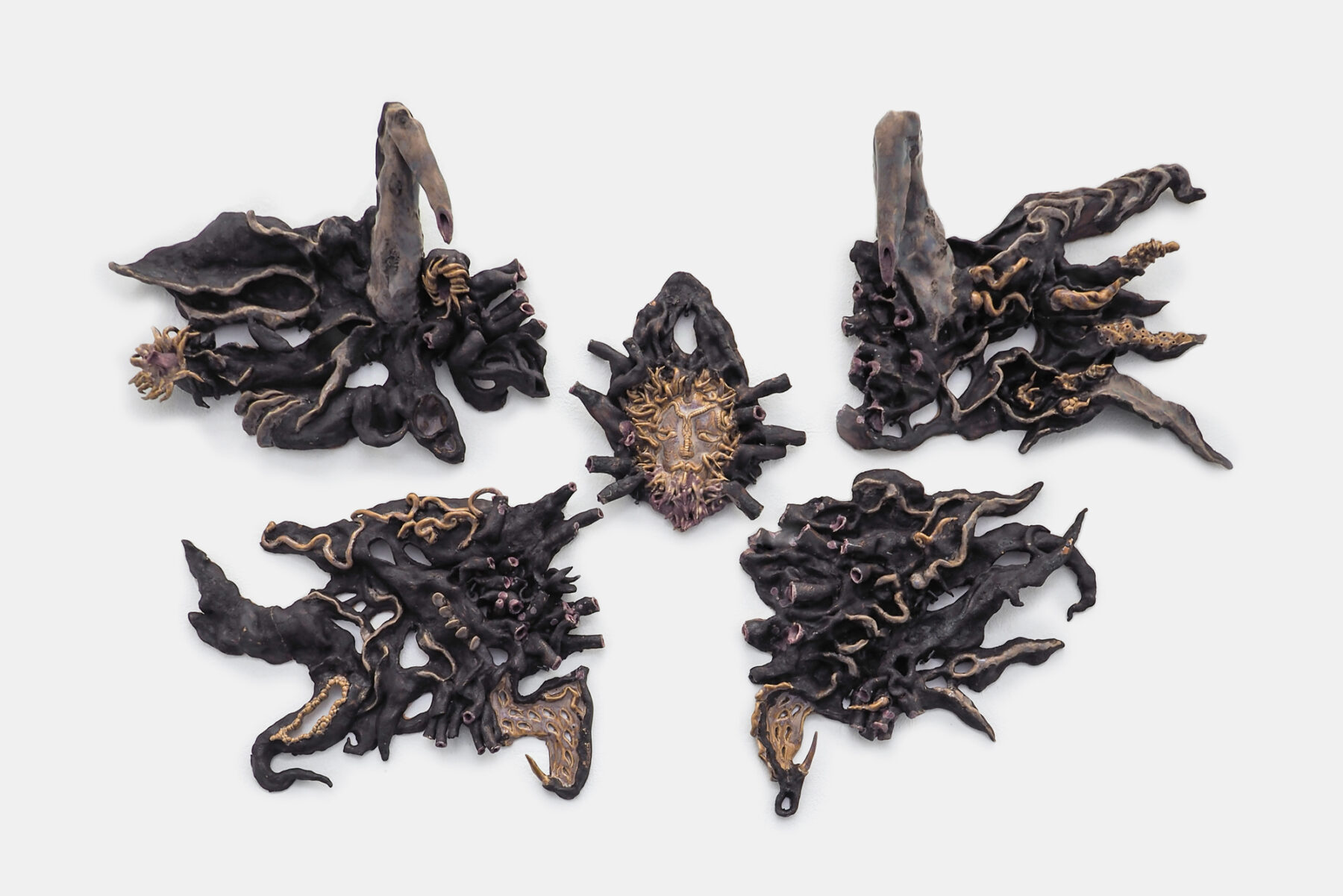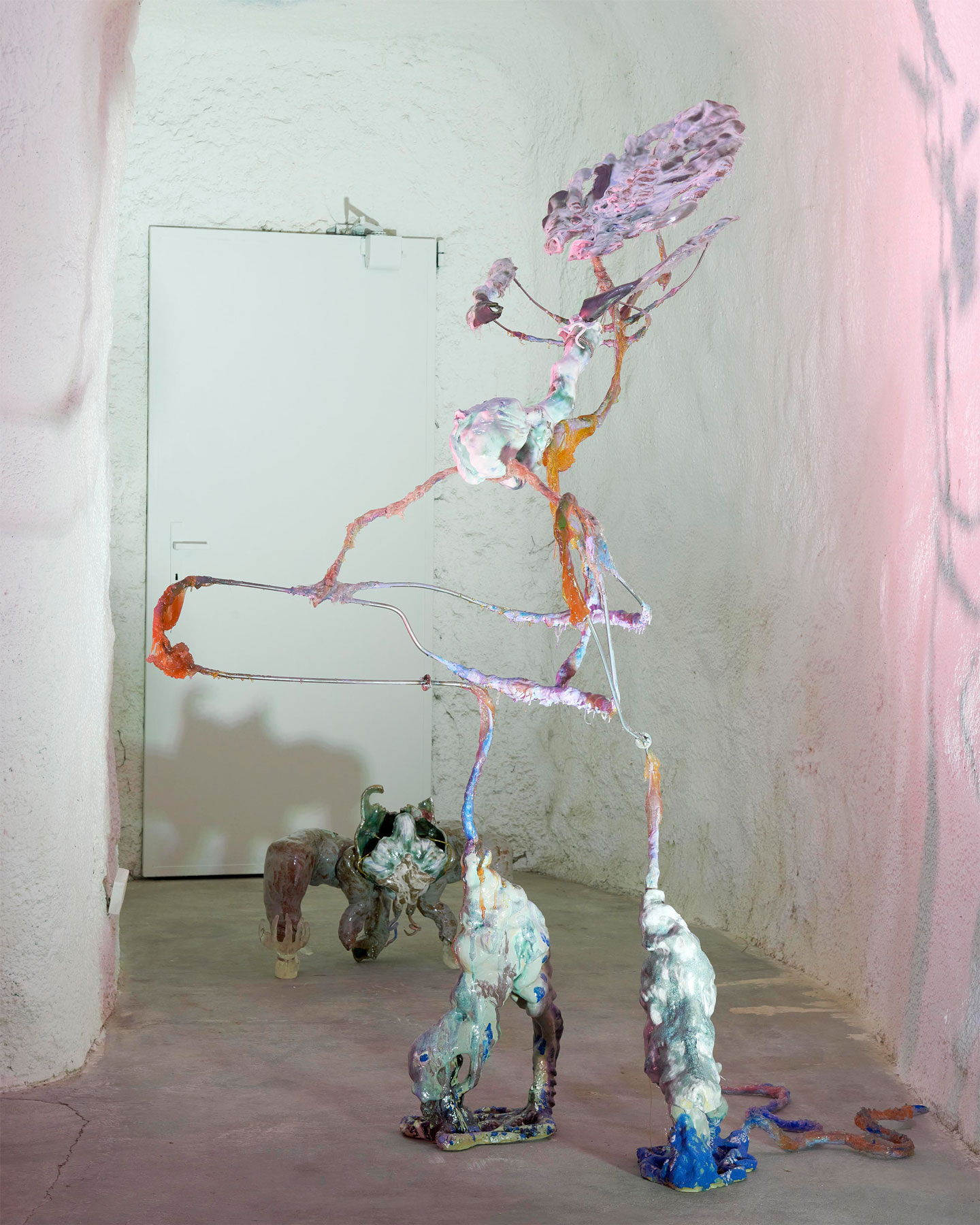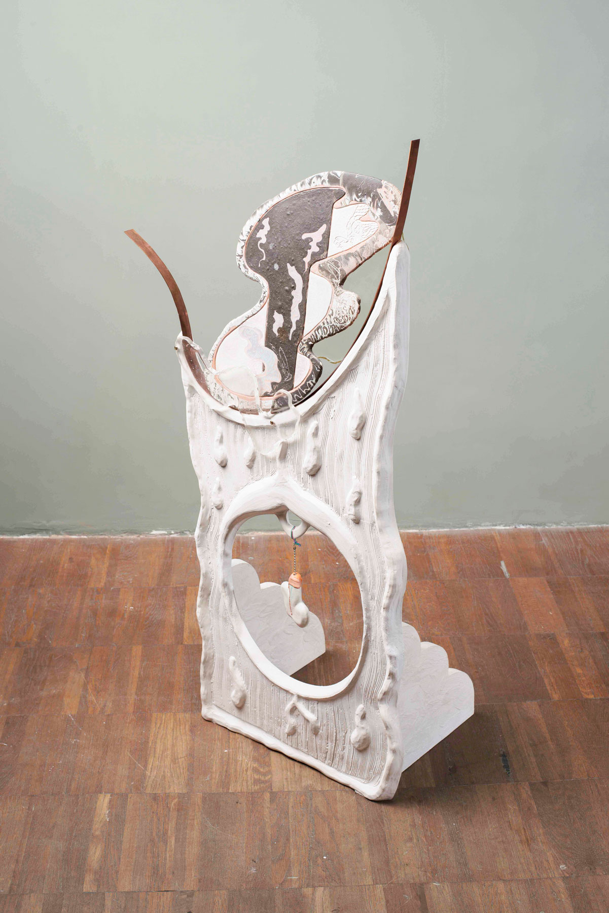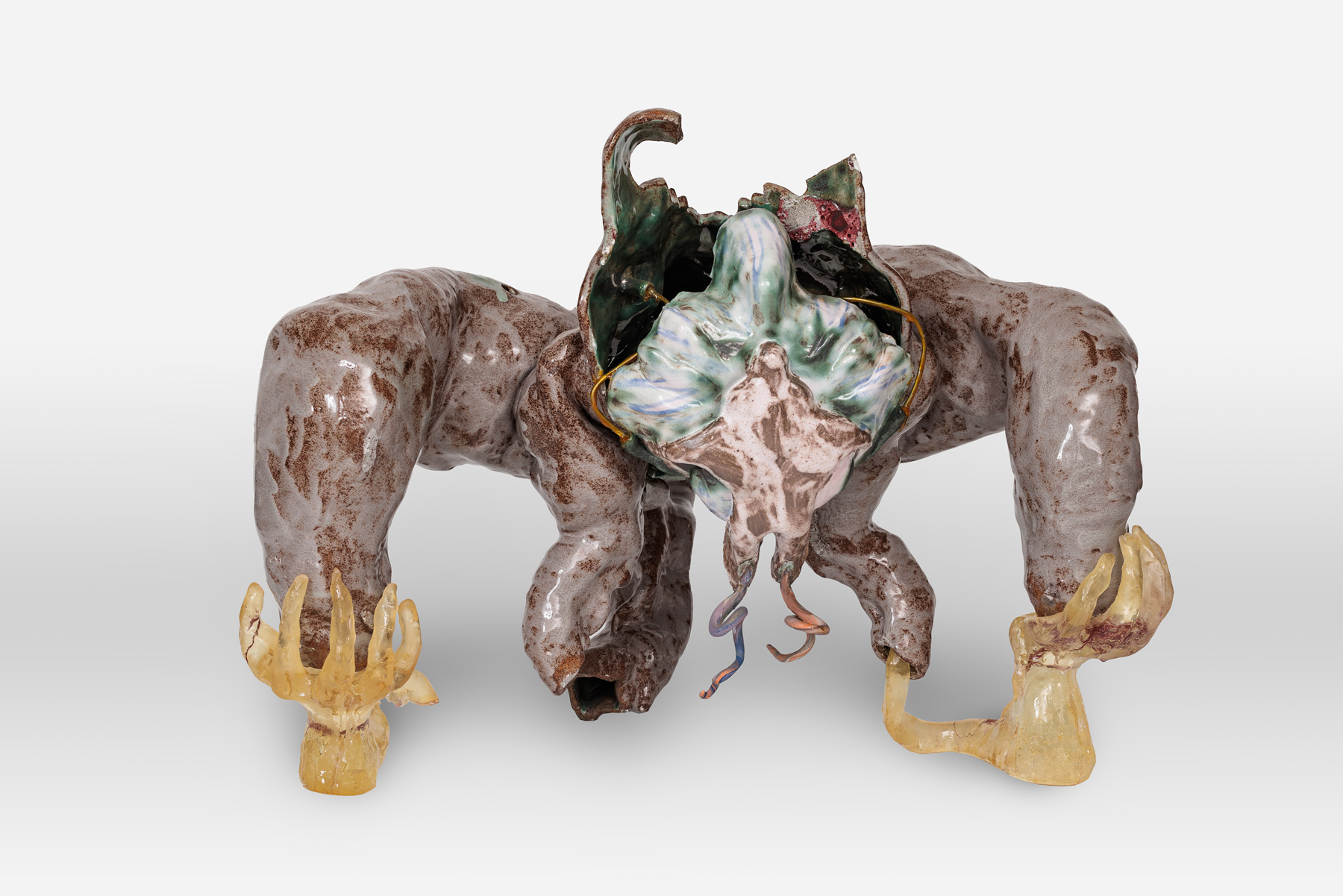 Porcelain, ceramics, dried flowers, wire, epoxy, 57 × 55 × 45 cm