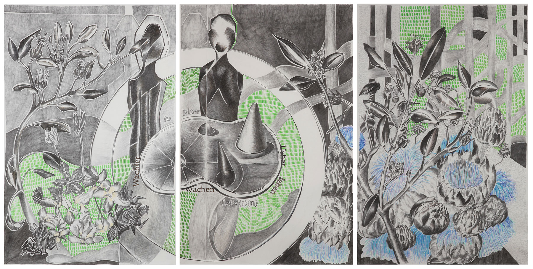 Pencil, coloured pencil on paper, 100 × 70 cm