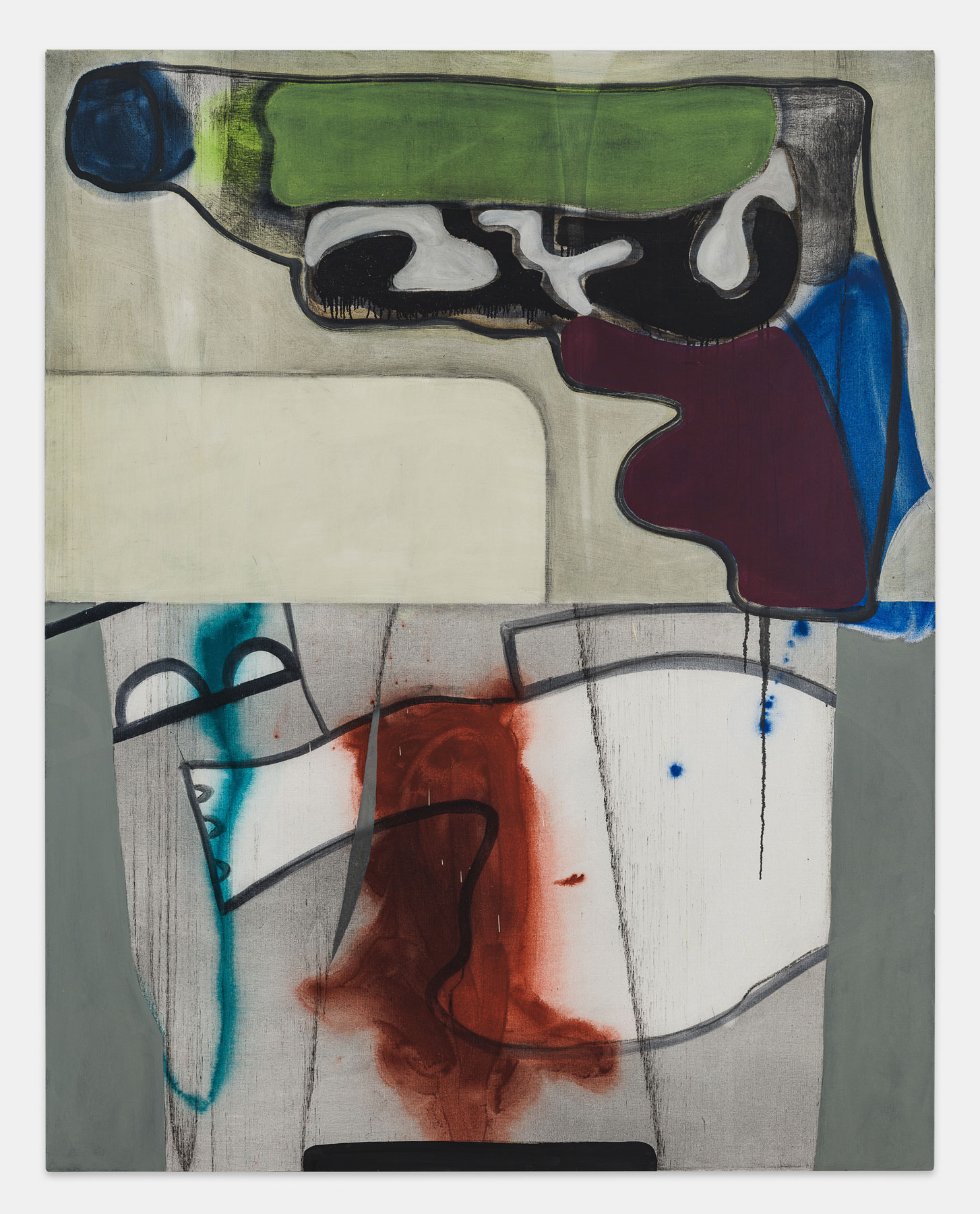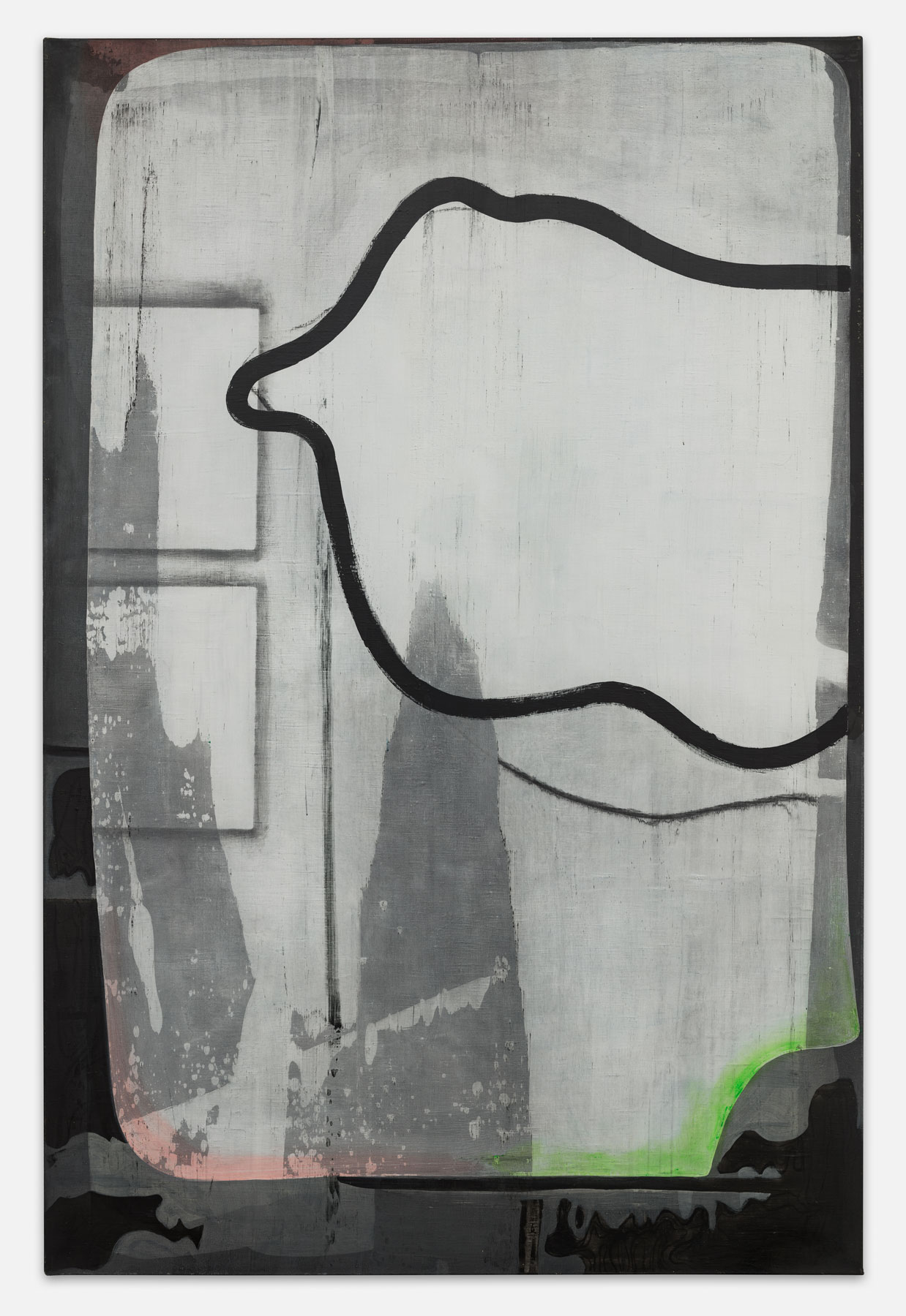 Erwin Bohatsch's work is characterized by constant oscillation between representationalism and abstraction, between color and non-color, between line and surface. It revolves around the question of the topicality of painting, which is still controversial today. In his current works, he defines the pictorial field as a heterogeneous matrix on which sharply defined forms meet open painting fields with coarsely brushed brushstrokes.