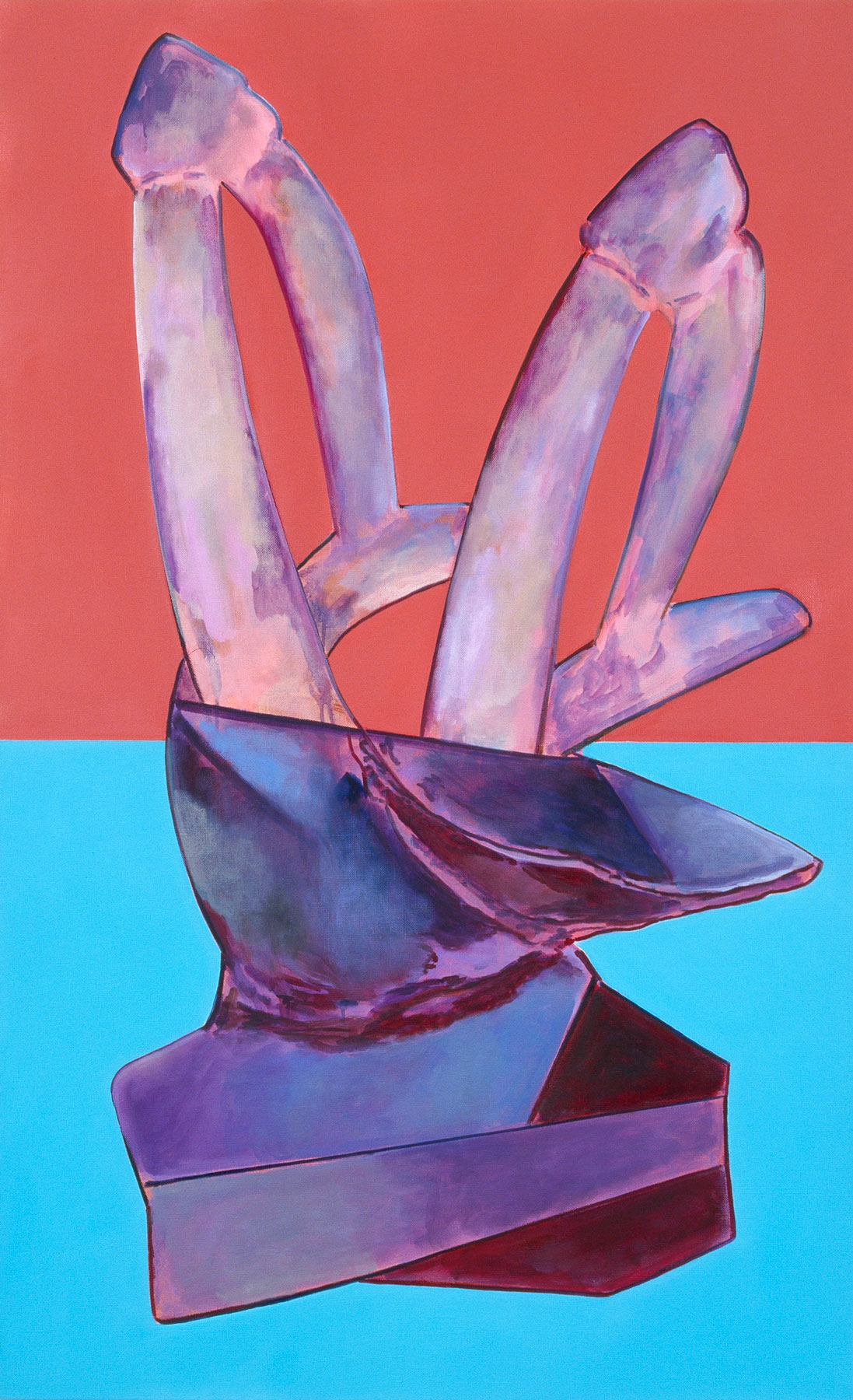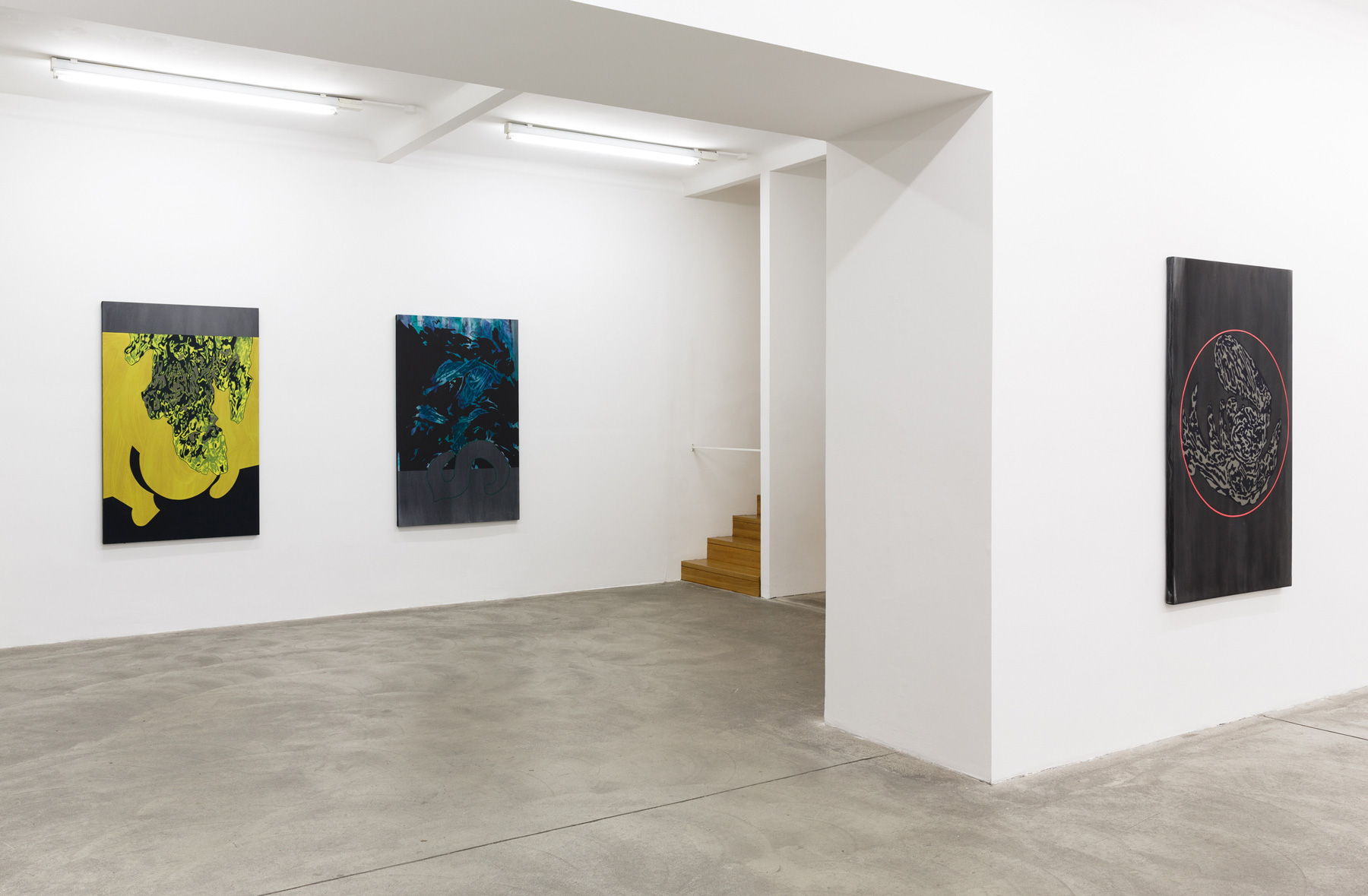Milena Dragicevic’s painting series Erections for Transatlantica oscillates between figurative and abstract, refusing to settle for a clear defined identity. Transatlantica alludes to a fictional place of origin or an in-between place which also marks the artist’s own story, having grown up in Canada as a Serbian immigrant and now living in Great Britain. “Due to my nomadic existence this suspended space is a place I have come to inhabit on a regular basis. It is a space that holds both a utopian promise as well as the fear of an impending abyss.” (Dragicevic)
