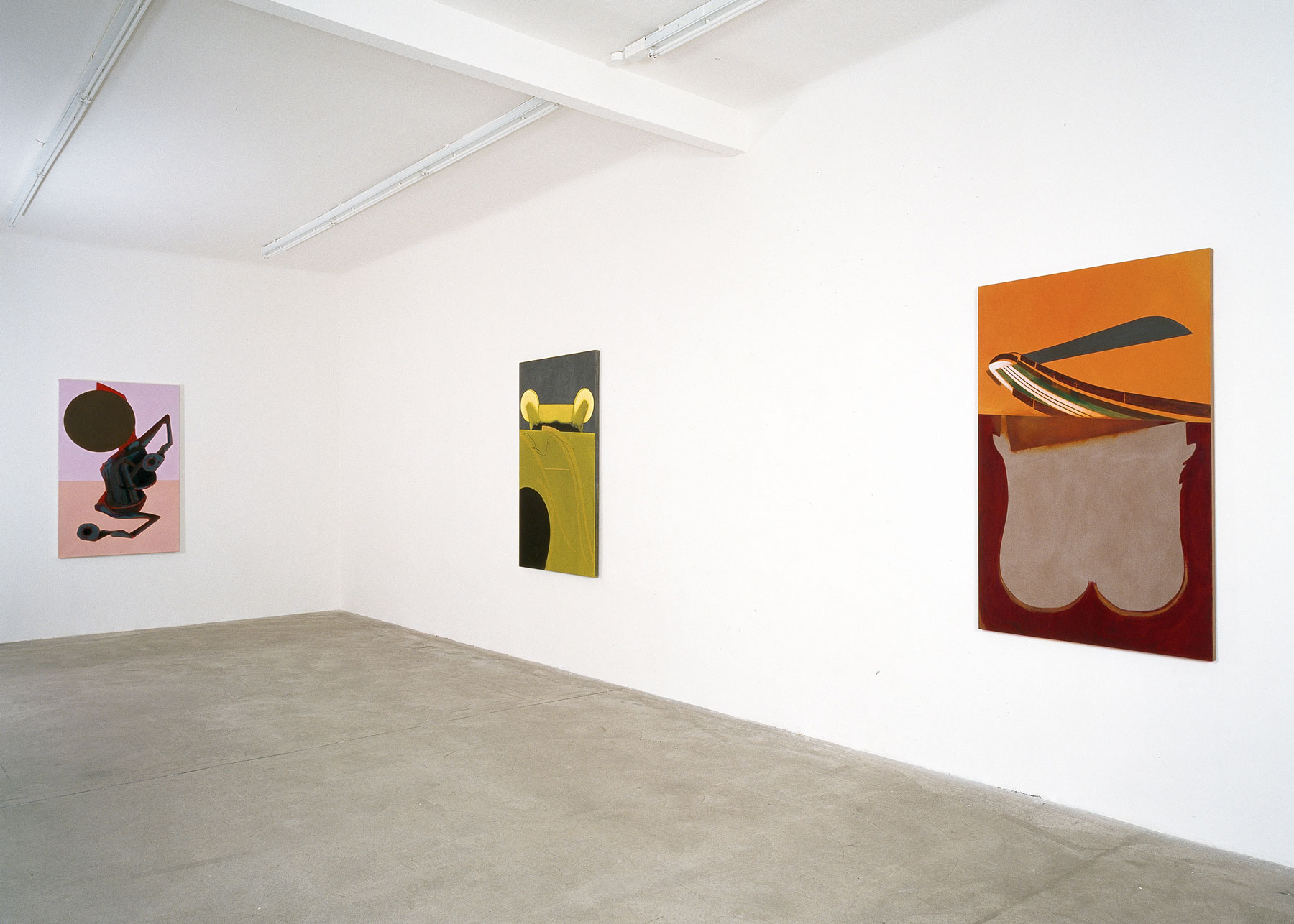 Just like her amalgamation of identity and community, an array of intersecting personal references transfer context and composition to her paintings. The form of her work uses a code of abstraction whilst keeping one foot in reality. Gathered imagery, painterly processed, dissected and abstracted, produce object-like forms and swaying outlines. They emerge to distinguish structure within the continuous space of the canvas, then almost dissolve again into the background, a relationship of tension and potential is built.