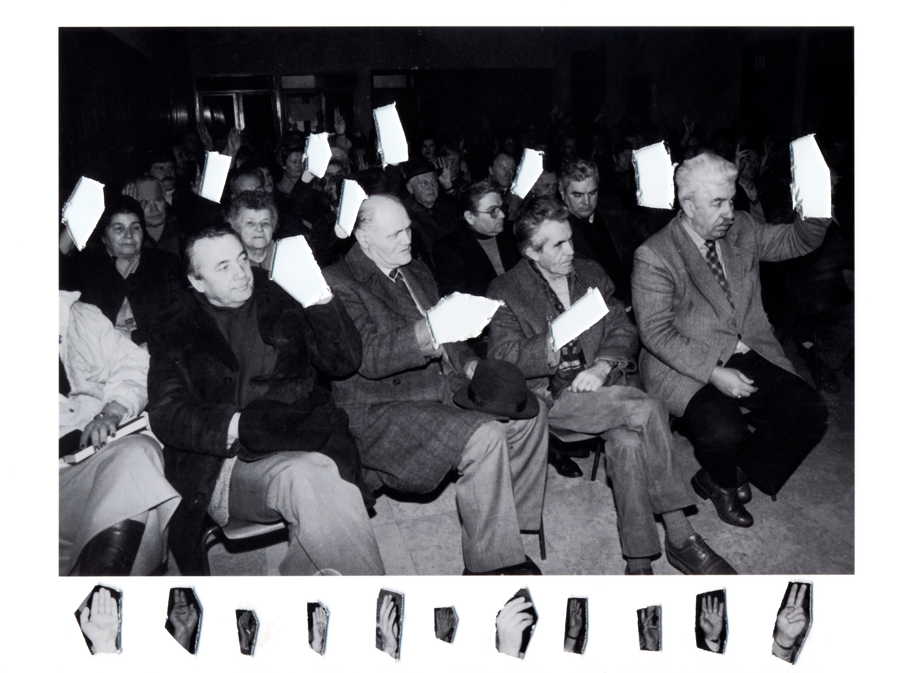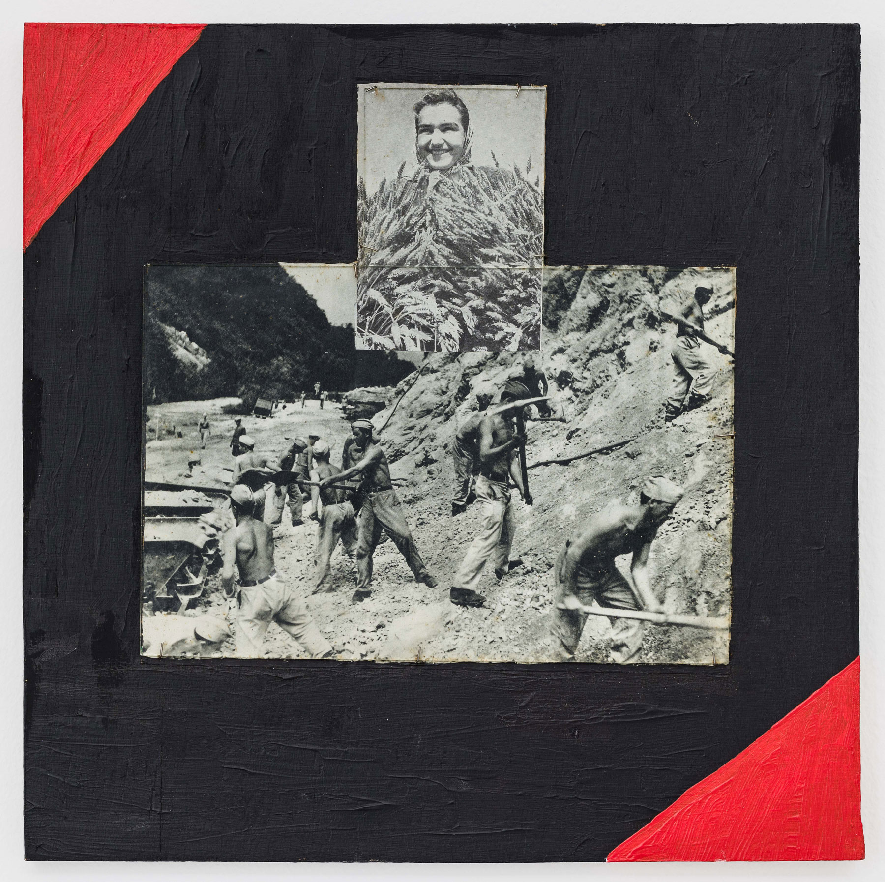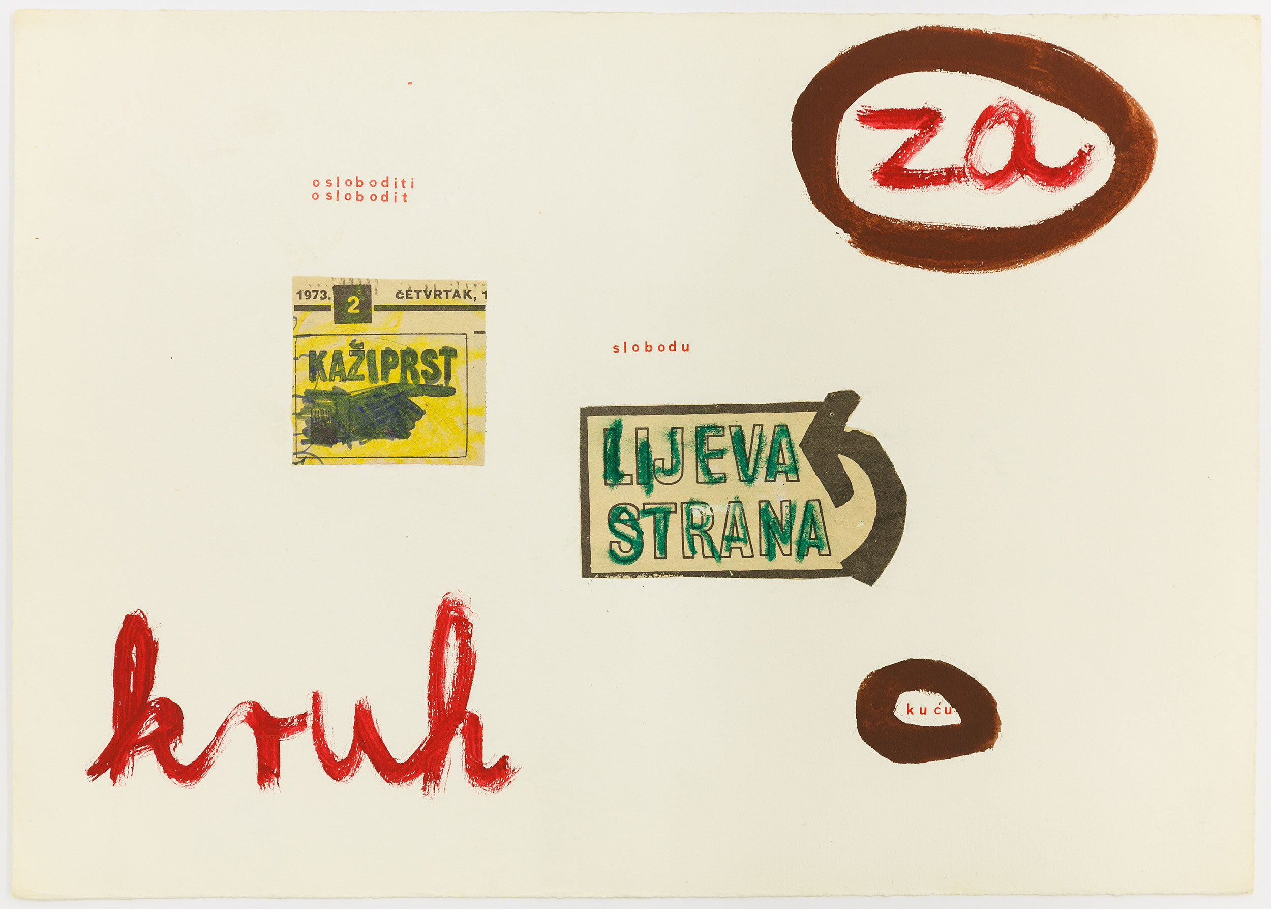 As a post conceptual artist Mladen Stilinović is skeptical about the potential of art contributing to social change and investigates its relationship to power. The focus of his attention is on the “afterlife” of utopias. When is a utopia of liberation turned into a gesture of authority? Stilinović integrated the ambivalence inherent to geometric abstraction (and the avant-garde in general) in his works with his use of colour and form. In his early collages Stilinović reveals complex and sometimes enigmatic “language games” that had not yet revealed their political and ideological potential, and points to his future works.