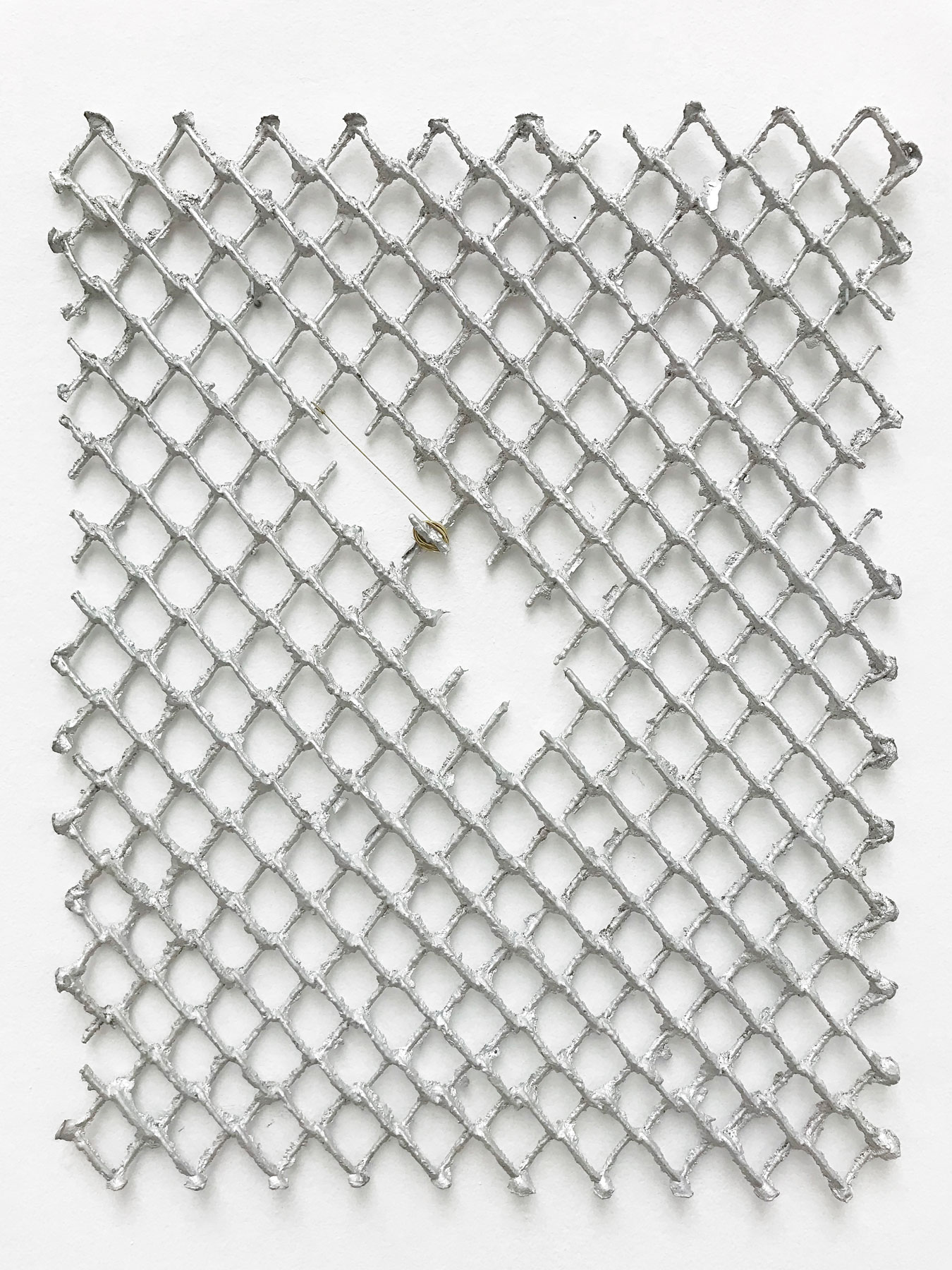 Through her works, Tania Pérez Córdova adresses topics like the passage of time, the nature of materials, the gaze of the other, the imminence or possibility of an action, the way in which we assign value to objects, negative space. Her sculptures often explore material processes as a narrative tool for examining time, identities, and places. In the series Things Into Themselves, the artist took on the task of making objects while somehow undoing them: For A fence into a fence 7, she first produced a mold of the object, then cut the fence into pieces, melted it, and recast a new iteration into that first mold. A piece of a fence now becoming something new, unusable, fragile, a step closer to its own dissipation.