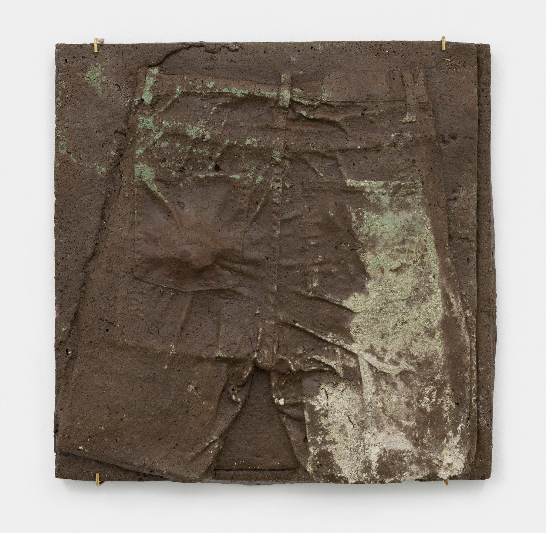 Earth, grass, varnish, bronze cast in someone's pocket, 50 × 51 × 6 cm