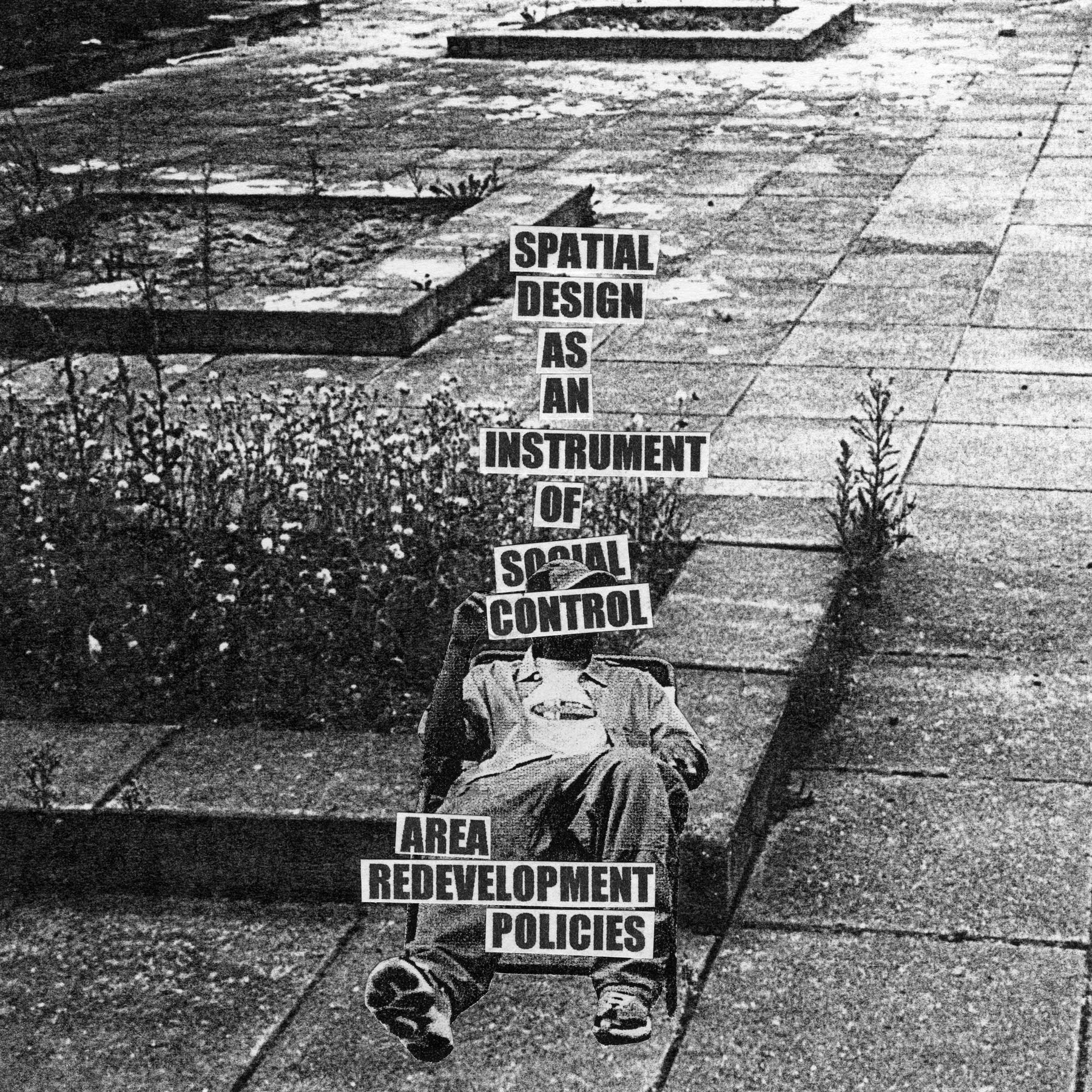 Jakob Kolding’s work deals with urban life and the configuration of urban space. In precise black-and-white collages he raises the issue of the incompatibility of way of life and such configuration, and the extent to which this is reflected in social interaction. He is particularly concerned here with the social effects of dreary modern suburban architecture and youth culture.
