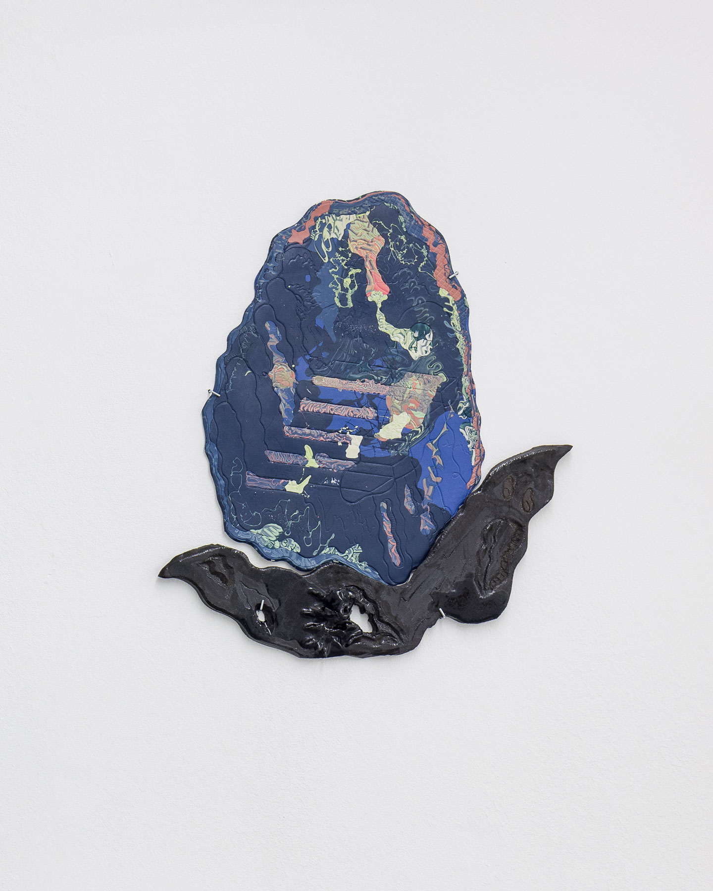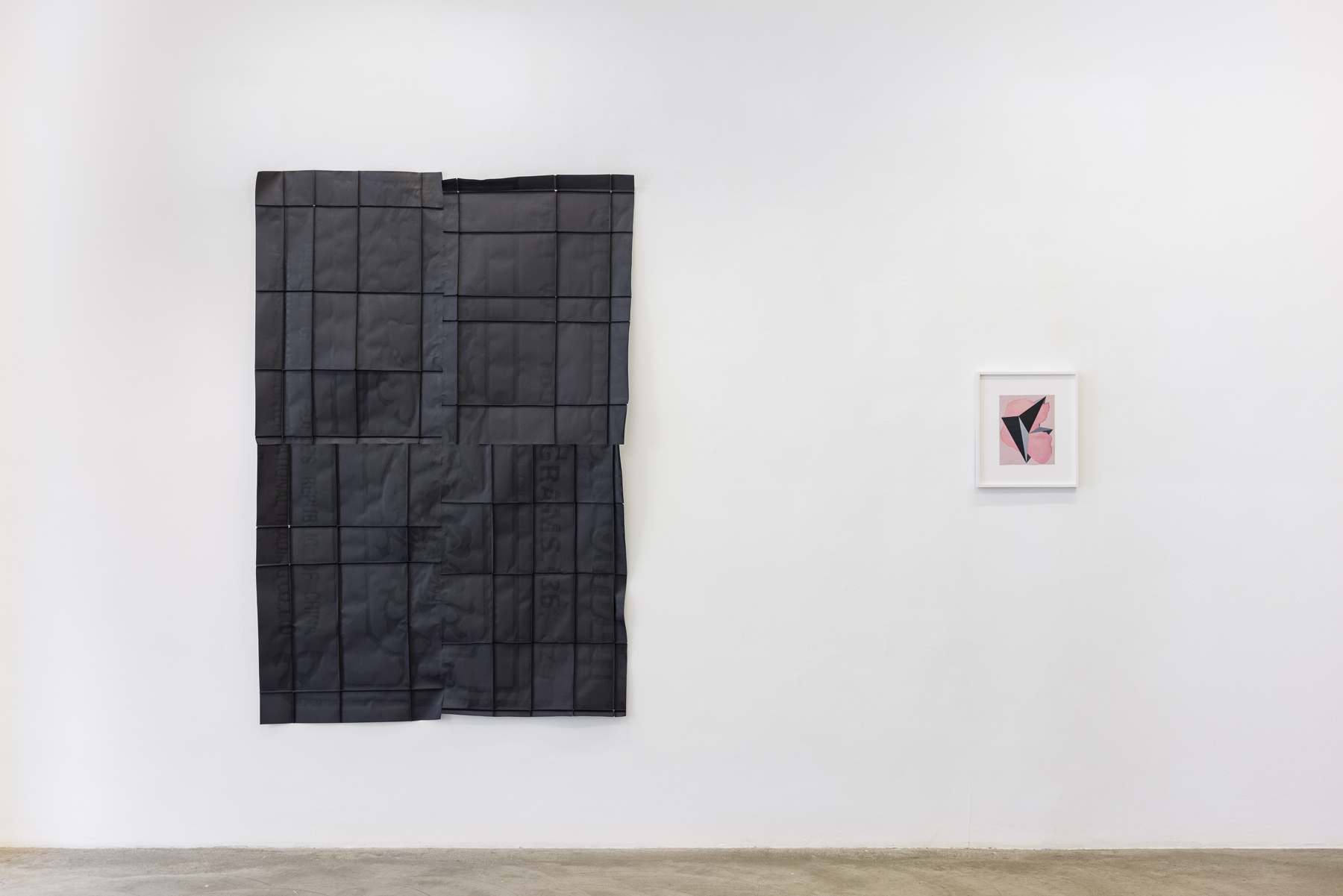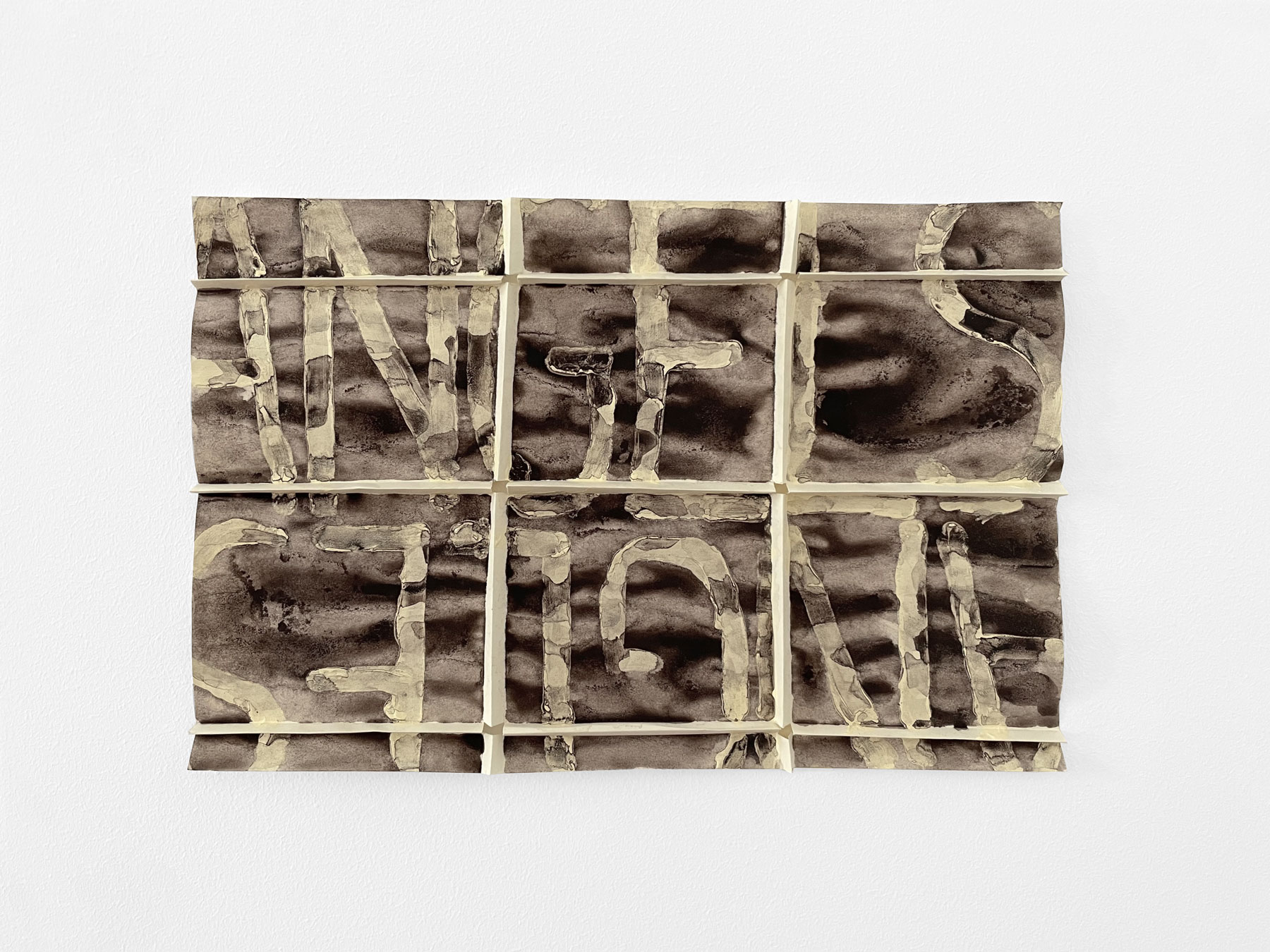 Spatial and psychological dimensions are synergetically linked in Lukas Kaufmann's works. Through interweaving working steps and production techniques, he thematizes the simultaneity of concealing and exposing, as well as the relation of the image space to the image carrier. By folding the paper, Kaufmann forms a new spatiality which becomes three-dimensional through an inflowing water-colour emulsion. The picture planes seem to be charged with emotion, the matter takes on a life of its own. The grid as a picture carrier leads the viewer's gaze without restricting it. The simultaneous mystification and de-mystification of contents, motifs, and words is a recurring approach in his artistic practice.