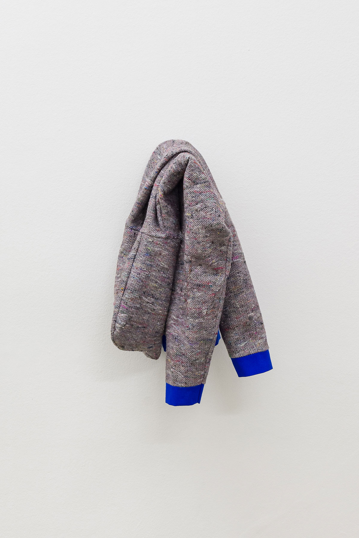 “A sweater as a product is universal. The pattern, the form, the shape are not related to gender, social class, milieu etc. Only the size of the sweater could refer to me. The material, the transit blanket, refers to my job in the art industry.” Florian Mayr works on fields that have a certain generality within the art context or are thematically inscribed in it. In the pattern series he connects the body with labour. “The central theme of my work has for some time been the thematic link between life, work and art – work, work, work.” (Florian Mayr)