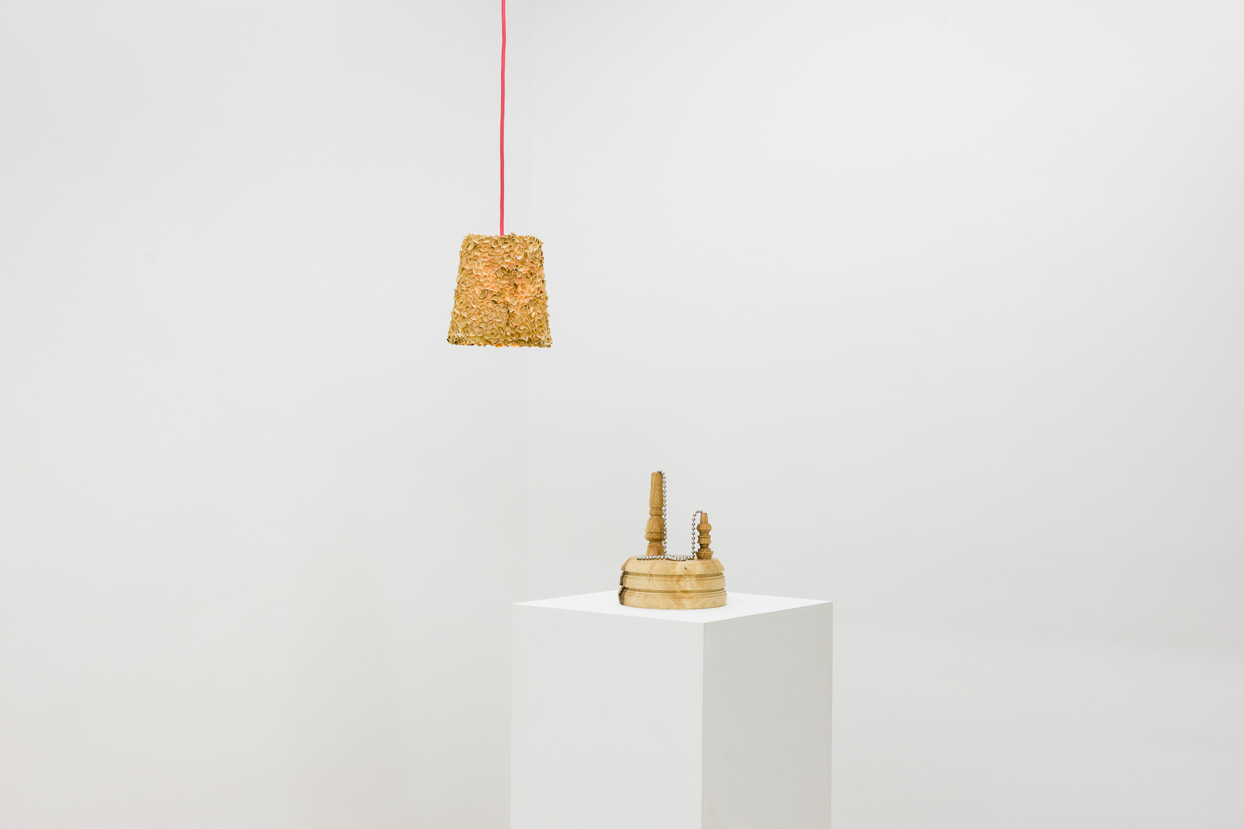 Igor Blomberg Tranaeus makes sculptures and installations using a broad variety of materials, including nutshells, lamps or walnut wood. He is interested in the symbolic power of art and in what conditions the production of artworks. The Pistachio Lamp addresses the relation between the artist and the material and challenges the use of a trivial object. Blomberg Tranaeus is dealing with the relation between the identity of the artist, the very modern idea of the artist as singular author of his works, and on the other hand art as communicator of common symbolism, an expression of something much deeper than a single person's individual creativity.