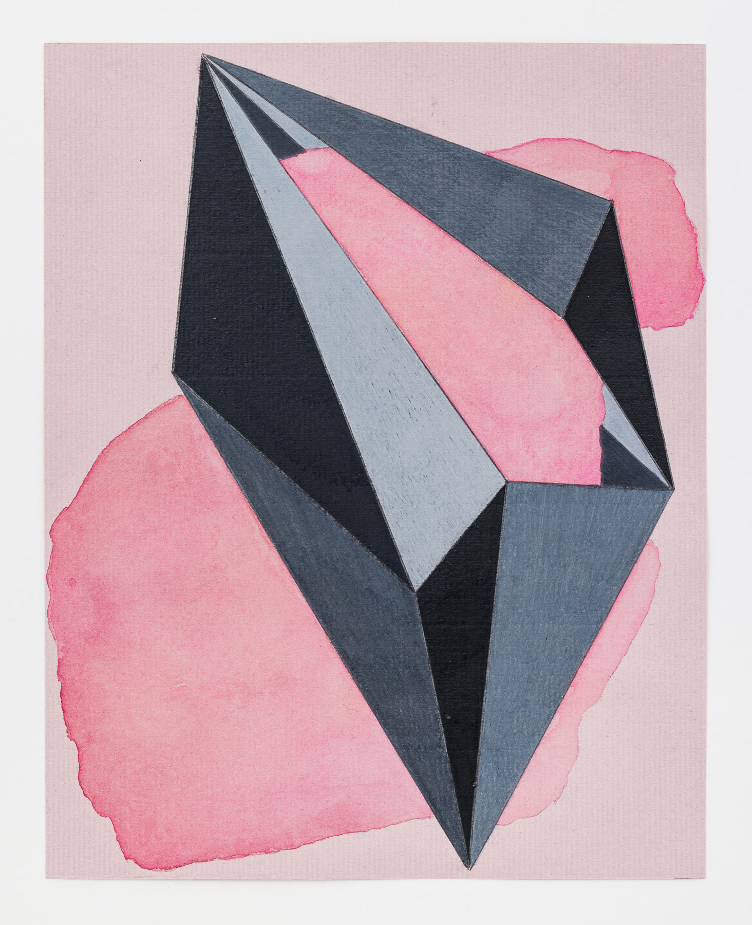 In her new small-format drawings, Adriana Czernin combines two very different forms: a sharp, crystalline geometric body, and a fluid, amorphous, organic shape which are intertwined in an ambiguous embrace. The organic form seems to be determined, but also held and protected by the geometric body. At the same time, it penetrates its vessel and oozes out of it. Czernin plays with opposites: soft — hard, mobile — rigid, strict — apparently free, concrete — abstract. “Fragility can lead to insecurity, but it also means questioning the circumstances, it means movement, development, no matter in which direction.” (Adriana Czernin)