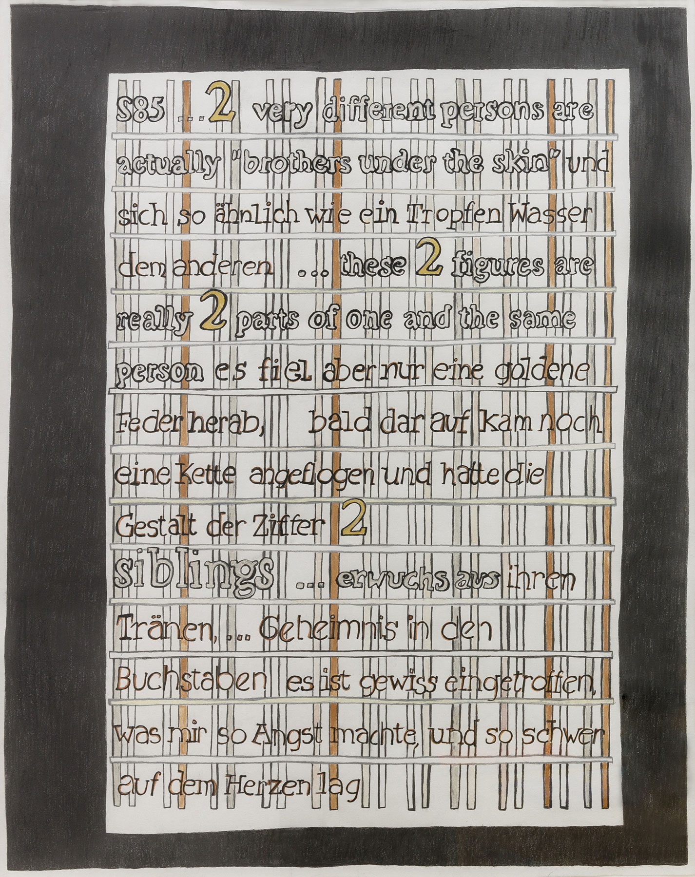What the artists themselves titled multiple authorship relates to the twin sisters' joint work, which in this case not only comprises a twofold but, in a psychoanalytical sense, brings components of multiple personalities into play, supplementing these further with the participation of other individuals. This differentiated, situation-specific working method frequently allows the Hohenbüchler sisters' works to emerge in new forms, whereby there is no superficial preference regarding the levels of expression of particular media. The focus on different forms of materiality and textures is always being re-explored. This is also due to the fact that the twin sisters, who have been exhibiting together since 1988, themselves come from different disciplines: Irene from painting and Christine from sculpture. For both of them, the artistic act per se should be in the foreground of a discussion where the resulting product is merely the outcome of a long process of discussion and reflection.