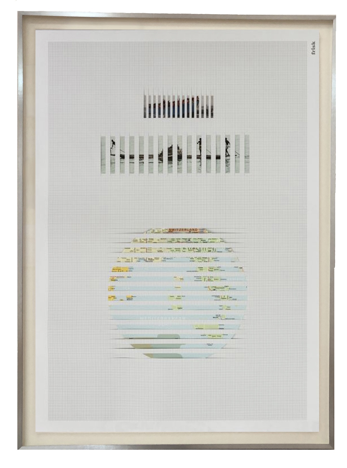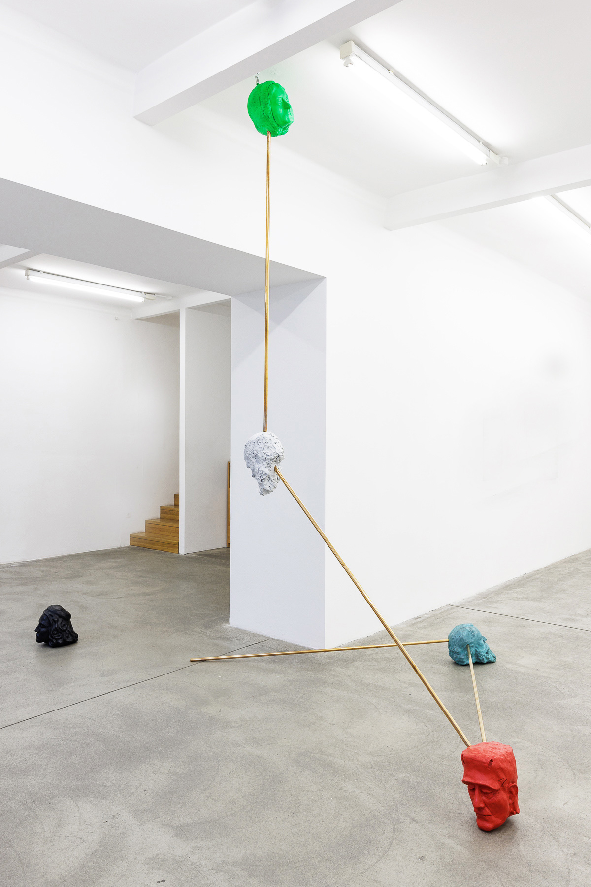 Goshka Macuga’s International Institute of Intellectual Co-operation (2016) features a group of portraits connected by rods which draw a diagrammatic relation between them. It remains unclear whether the lines link or separate these faces, but as in a multifaceted Janus, they cannot look at each other. The title of the series and the subtitle for this particular configuration (End of God: Madame Blavatsky, Giovanni Pico Della Mirandola, Monster of Frankenstein, Rabindranath Tagore, Charles Darwin) directs the reading towards the historical recurrence of the utopian notion by which cultural exchanges and relations would necessarily foster a peaceful stability. The ambivalence of the function of the connecting rods, simultaneously linking and separating the portraits, suggests an analogue impossibility as the axis/threshold in the Janus head.