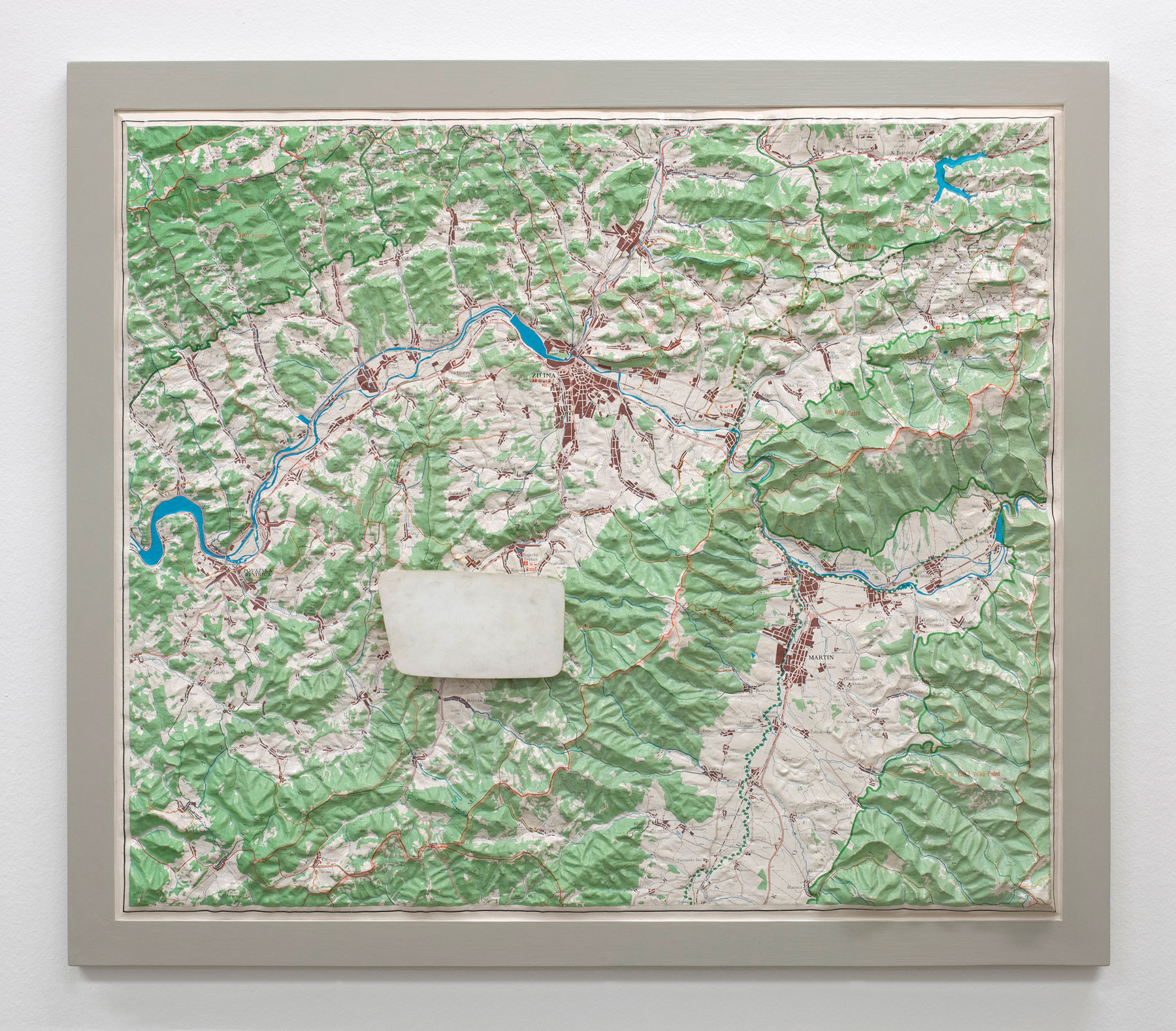 Found plastic map, found template of a wing mirror, 84.5 × 96.5 × 6 cm