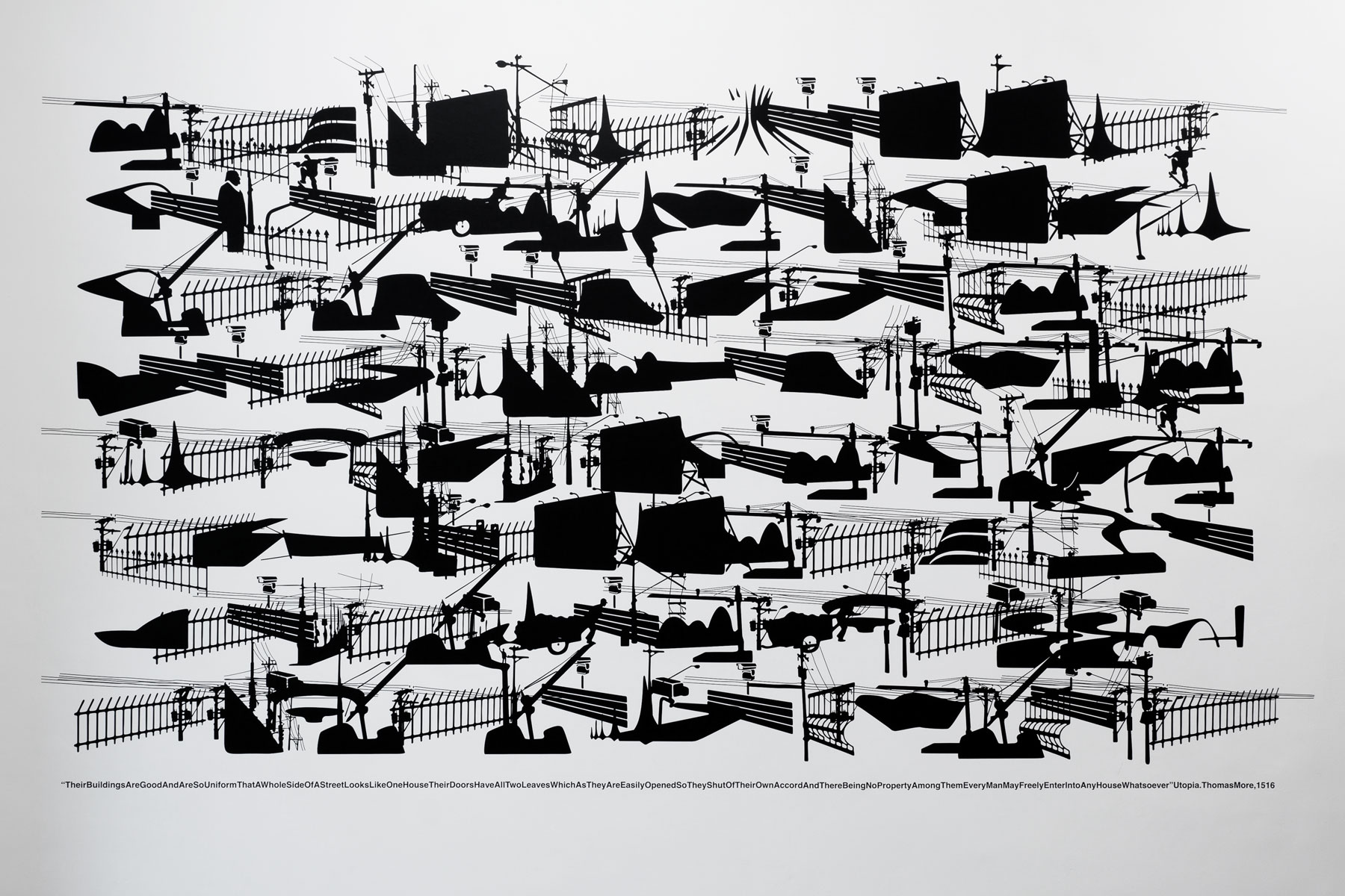 Hammock, serigraphy, wall labels, 300 × 400 × 300 cm