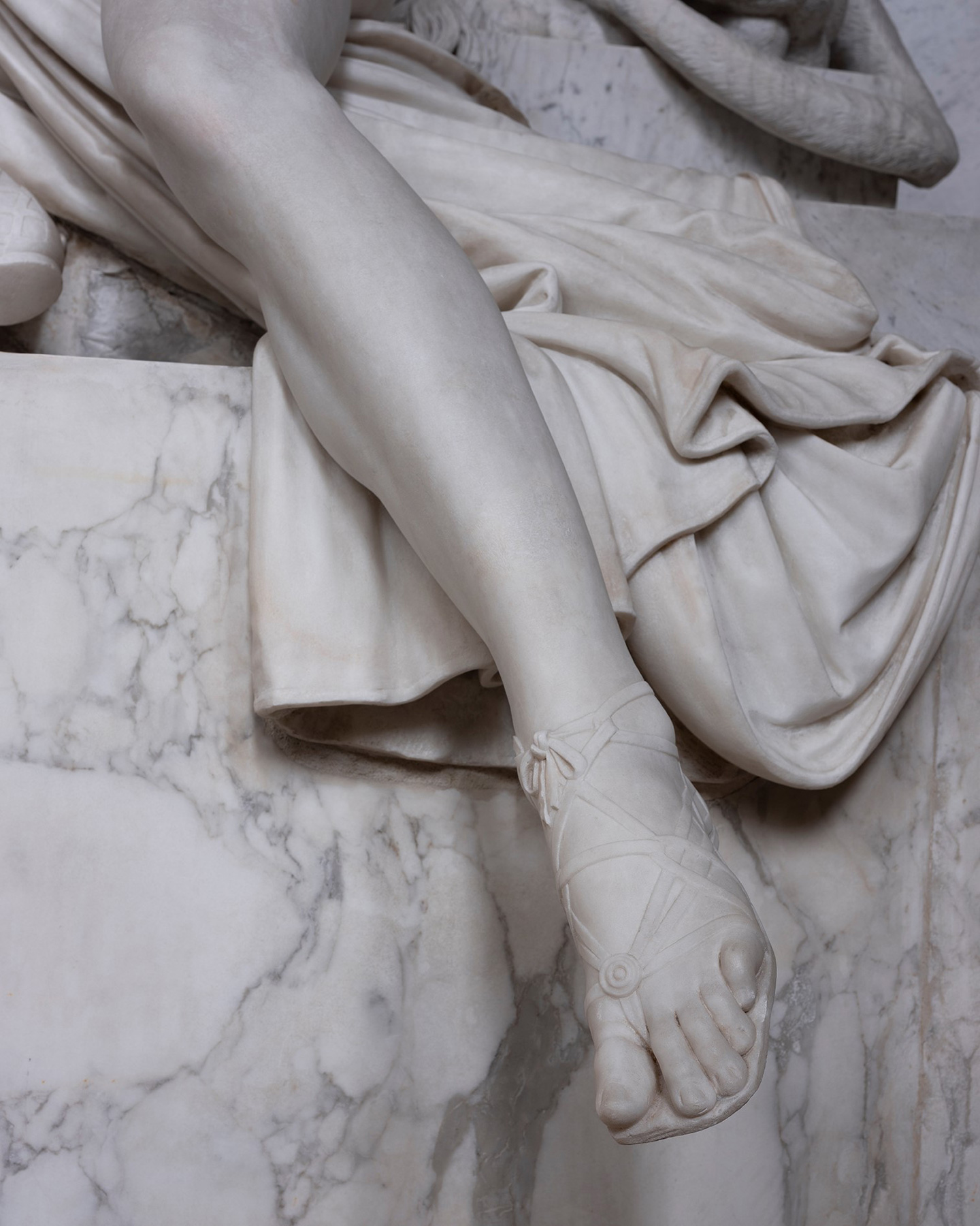 The second image shows a detail of a Canova sculpture in the Augustinerkirche in Vienna, in which the foot of a marble statue seems as if it were alive — the moment when the surface of a sculpture seemingly begins to flow is also Feiersinger's demand upon his own sculptural work. In their interplay, the photographs and the object thematise questions about the sculptural and the plastic.