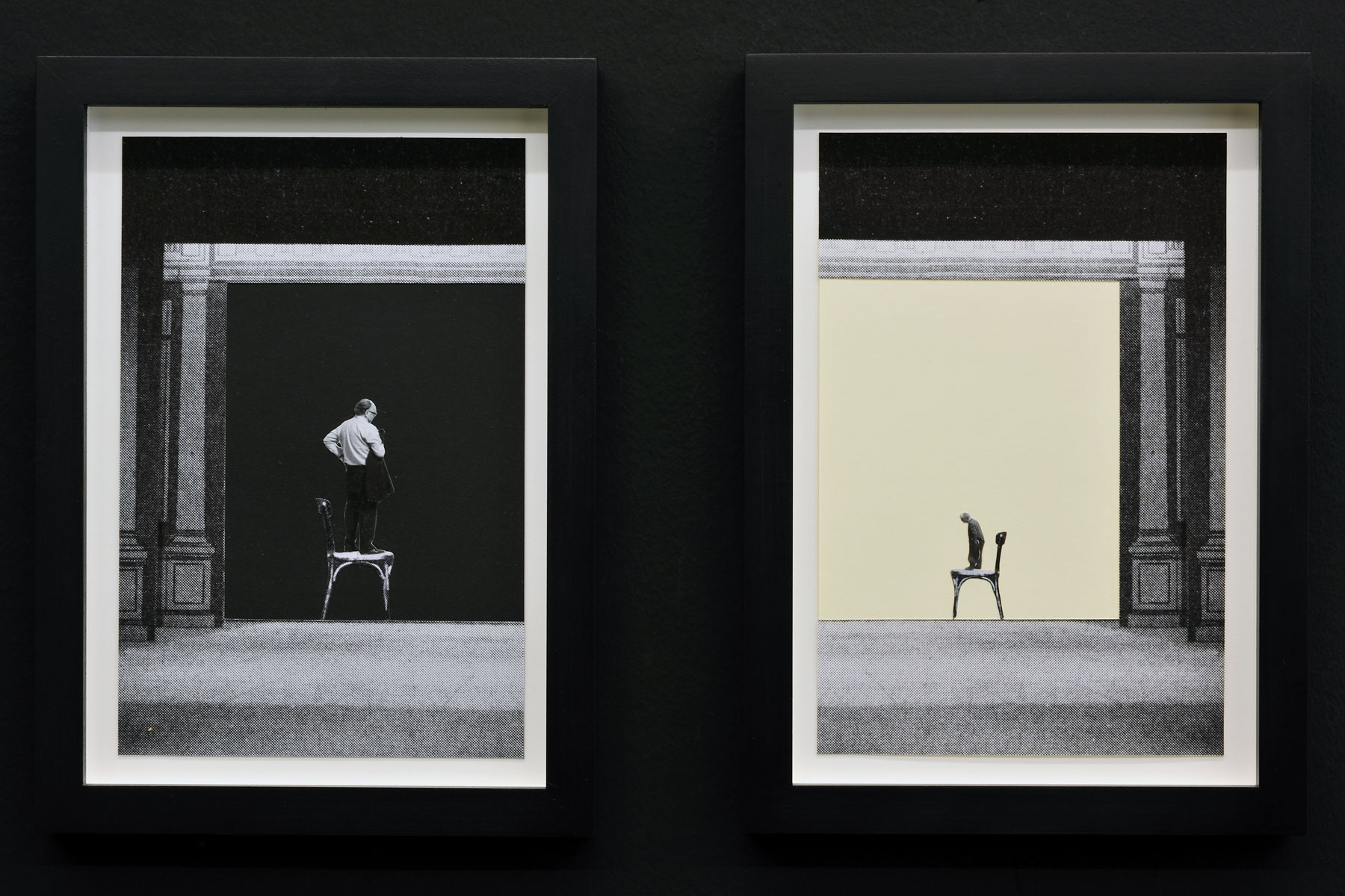 In these new works the concepts of abstract and psychological spaces have moved to the foreground. This move comes out of an increased interest in an uncertain or ambiguous space as opposed to a position of clarity, permanence and stability, insisting on the value and even necessity of not being in a clearly defined position.