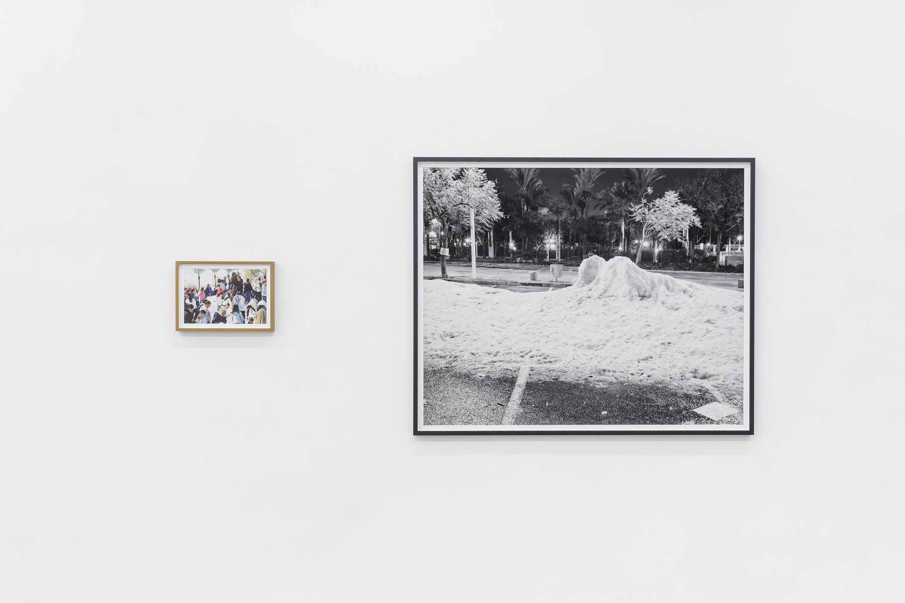 A trace is an indexical sign. It is based on an imprint, i. e., a location in space within a chronological structure. As a visible manifestation of something in the past, it has the character of physical evidence while being a reference to something that itself remains absent. This is how analogue photography functions, as traces in a frozen moment. The two truckloads of snow that melted over the course of a day in a suburban Tel Aviv car park have only survived in the photographic record, while finding new essence in the two photographs by Sharon Ya'ari. In contrast, when Roman Signer laid a fuse along the 20-kilometre route from Appenzell station all the way to the station at St. Gallen in 1989, it took 35 days to burn down: 150 seconds per metre. The stretching of time with the slowly burning cord remains anchored in the subjective experience of those who attended. The two photographs that have remained mark a before and an afterwards.