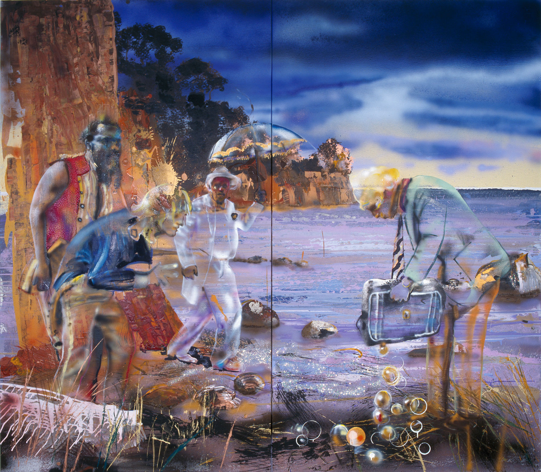 Acrylic, spray, oil on canvas, 230 × 260 cm
