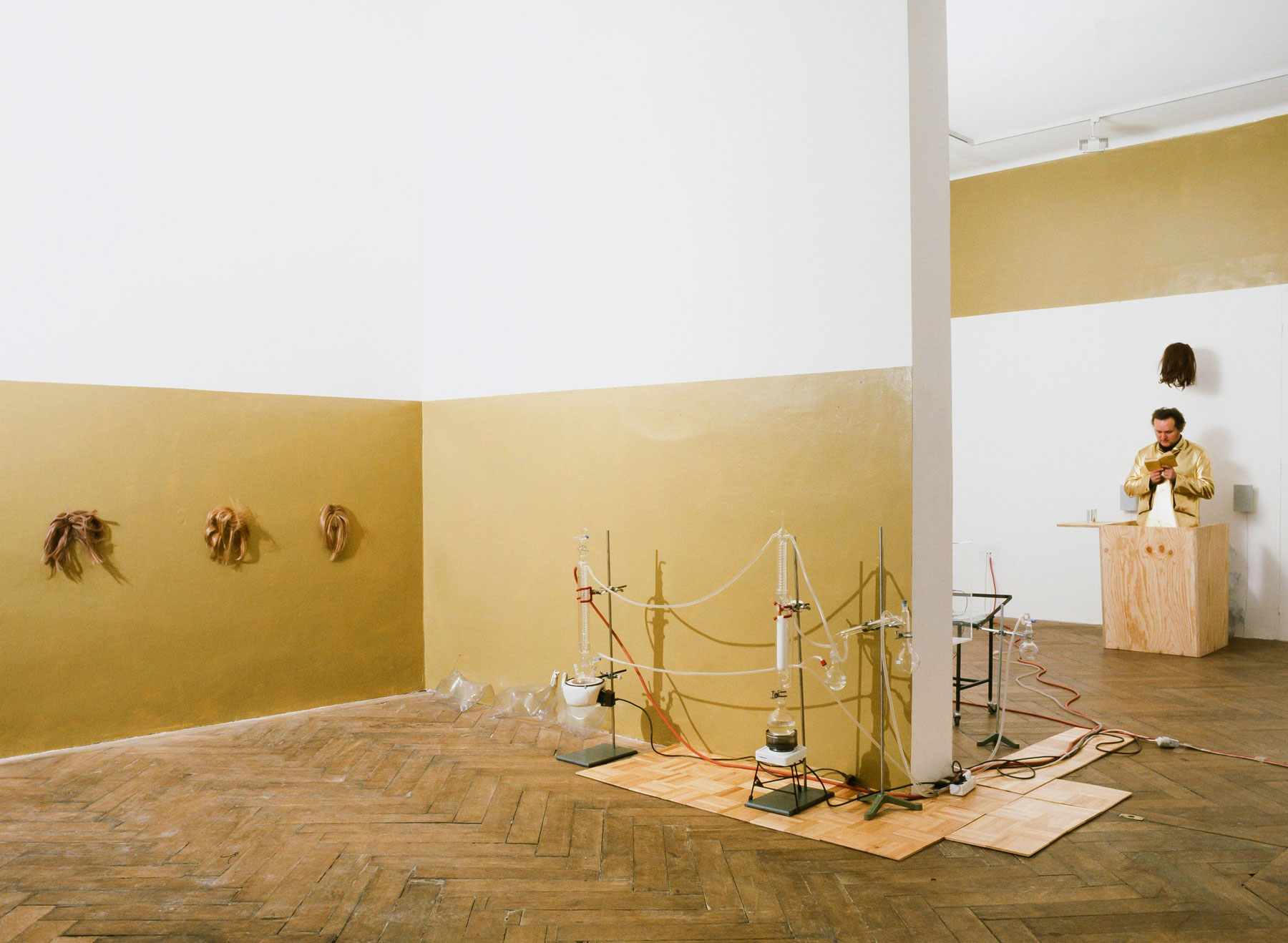 Im Raum Aktueller Kunst bezieht Schu diese Pseudogruppe in eine umfangreiche Raumarbeit ein. Der Ausstellungsraum wird dabei in eine Labor verwandelt, akustisch von Schus Kompositionen untermalt. Der Darsteller Andreas Lindermayr betreut als Alchemist und Pseudo-Schu die Ausstellung, während der Original-Schu als Videobild anwesend ist. Die Alchemie hat als Ziel die Gewinnung von Gold als prima materia. Dies geschieht über den Weg der Läuterung.