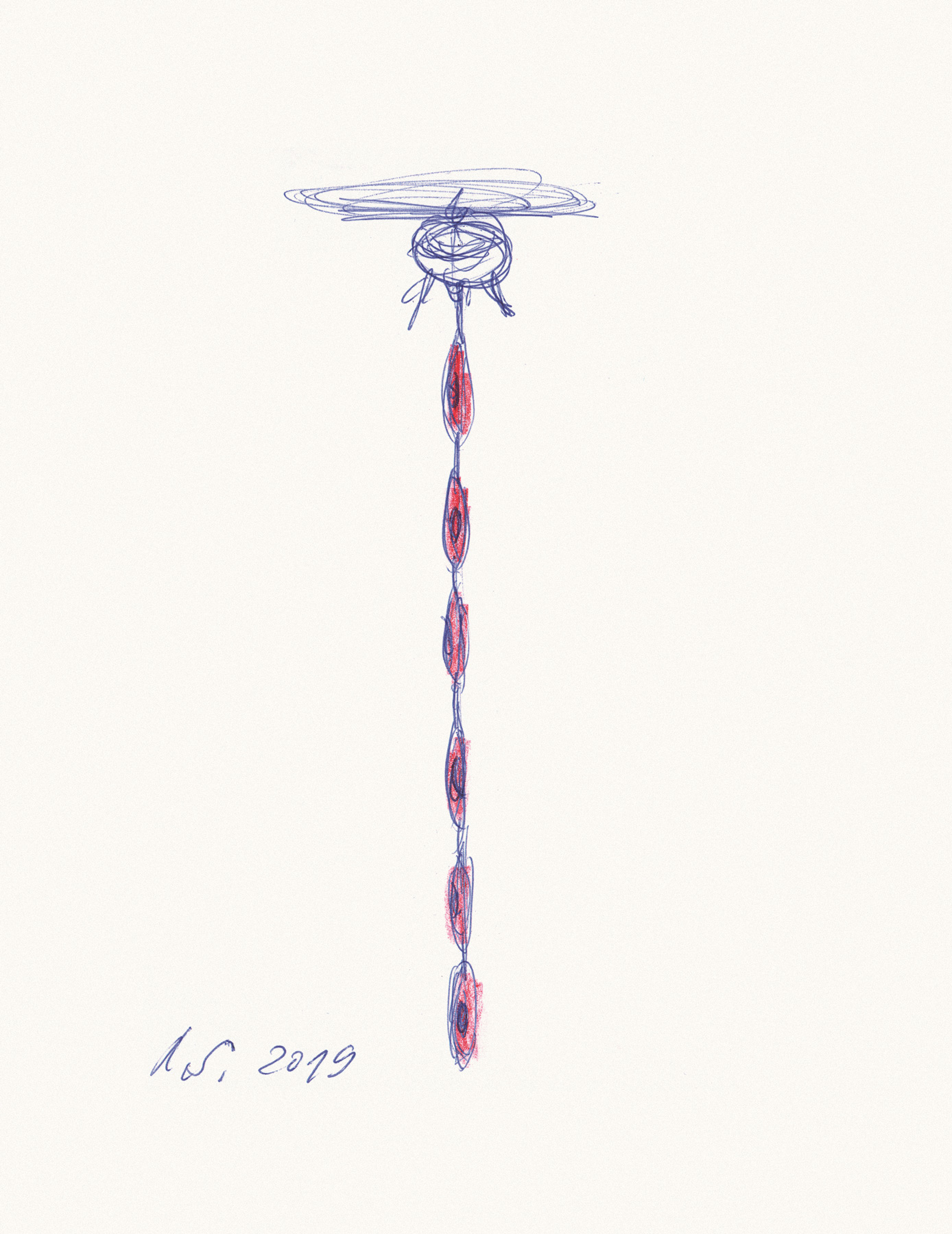 Pen, coloured pencil on paper, 14.8 × 10.5 cm
