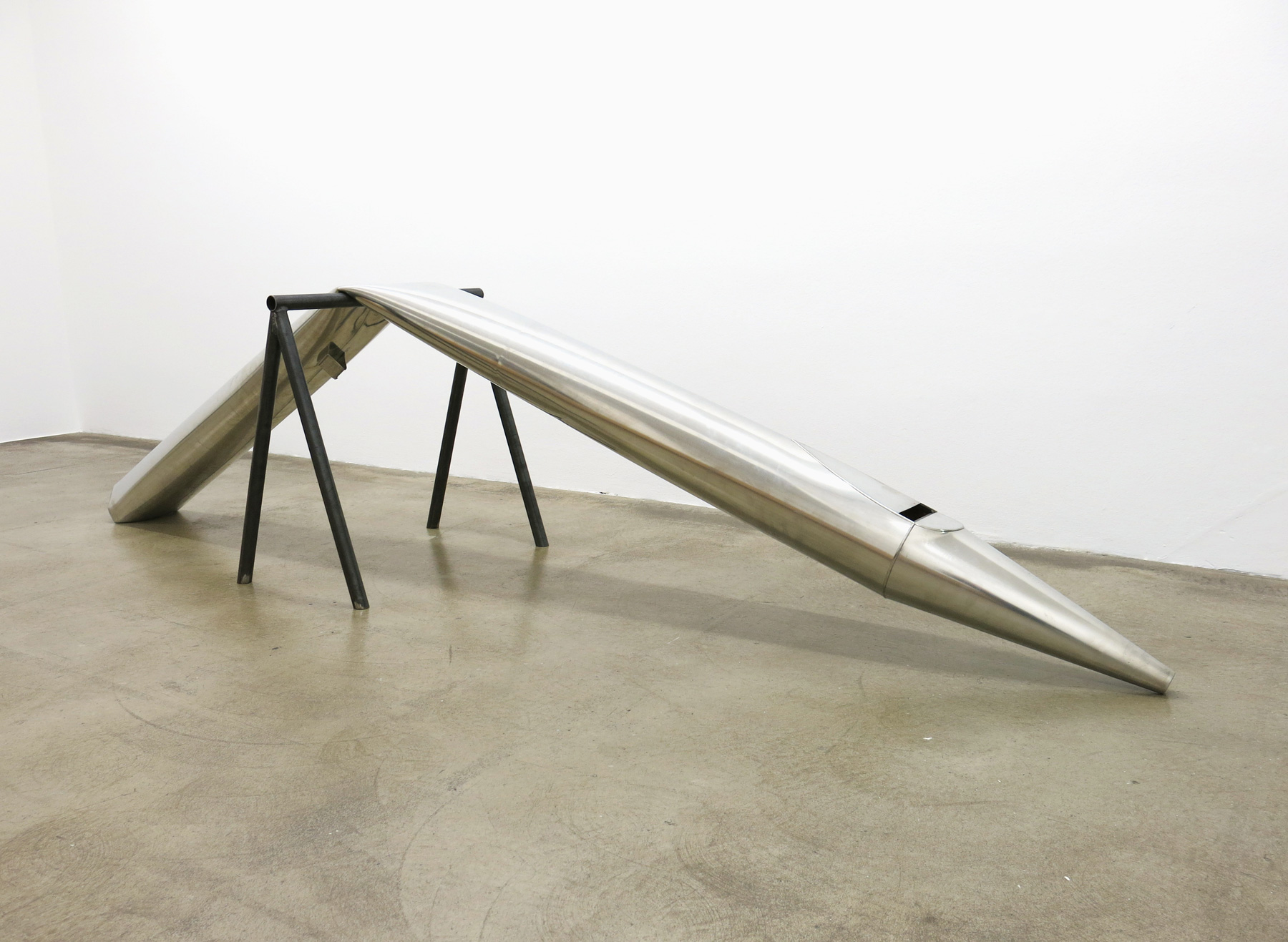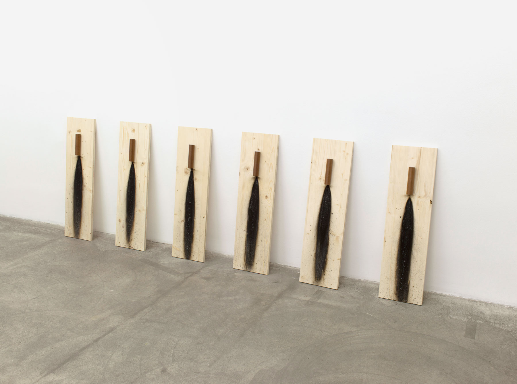 Wood, rockets, 6 parts, each 85 × 24 × 2 cm, installation dimensions variable