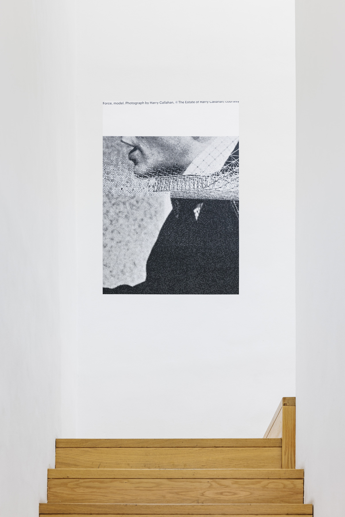 In the work Castles in the Air, Kolding references the famous architectural models of Konrad Wachsmann — utopian dreams in themselves of a non-hierarchical, open-use and, in theory, eternal building structure of connectivity. Turned in on itself, the collaged structure is punctuated by a photo credit belonging to the original image of the models which Wachsmann created for the US Air Force, as Kolding eloquently reminds us of the reality, function and financing that underpins buildings and architectural projects.