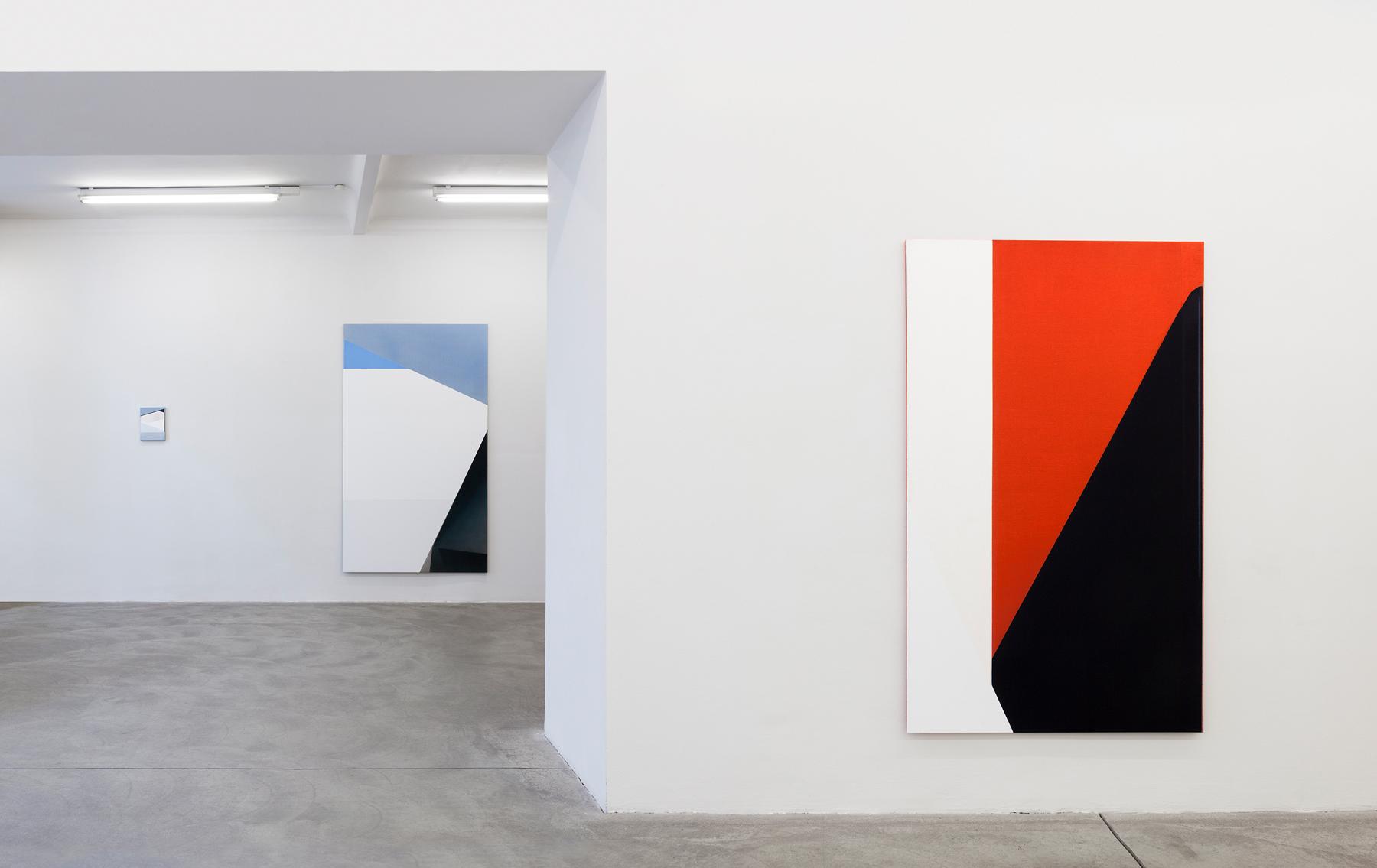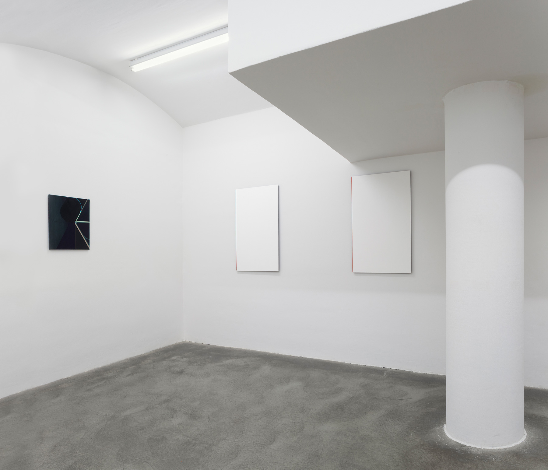The exhibition’s title, Pendant, also serves as the leitmotif for the artist’s new works: A pendant is a counterpart, a complement or an equivalent. Svenja Deininger goes one step further by referring to it as a “coercive counterpart”: “One part adds something the other part does not have.” This pendant can be in the same room, in the same exhibition, but it can also exist elsewhere, only in thoughts or memory. It can be vicariousness, an entire exhibition space or just a specific part in a painting, which finds its equivalent in a different part.