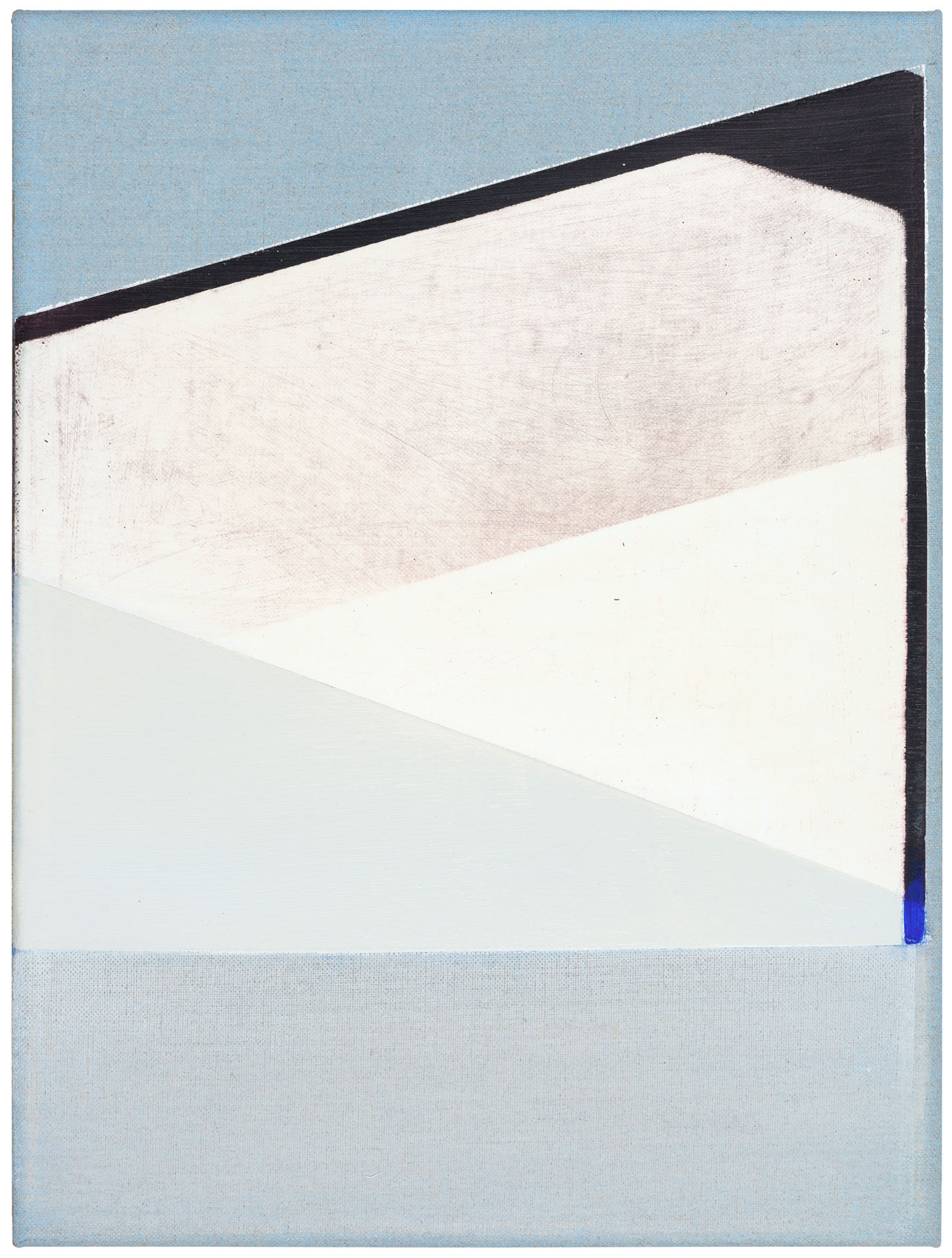“These are images that cannot be thought up this way”: Svenja Deininger’s works are the result of a process-like way of working. There are no predefined image ideas. Deininger often starts out from a form; she works in layers and coatings of colours and materials, repaints and uncovers. Primer, raw canvas, opaque areas and varnished parts convey various materialities; the visible surface of a painting is the result of the many underlying layers which often become visible at the edges of an image as overlays. At times, an unexpected line or drawing appears on the image area, consciously placed as a memory or quotation of a previous idea which was covered by new layers in the process of painting.