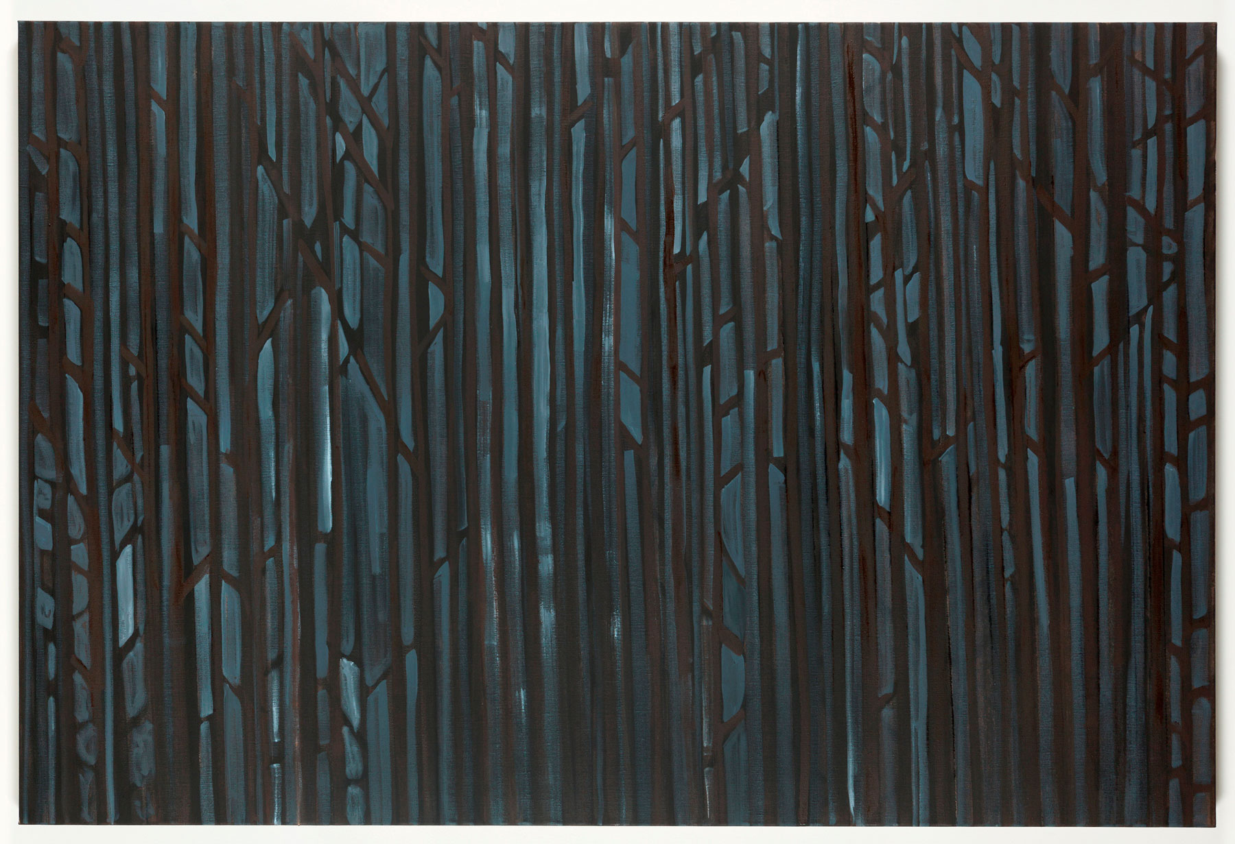 In his paintings, for more than a decade, Benjamin Butler has been focusing on the motif of trees and the forest, respectively, which he abstracts in a variety of ways. Confining oneself to a singular subject seems to limit the possibilities of representation. However, Butler perceives this as a formal liberation, opening up infinite modulations of his object, generating new forms, lines and colour fields again and again, and therefore offering an inexhaustible reservoir of questions immanent to painting.