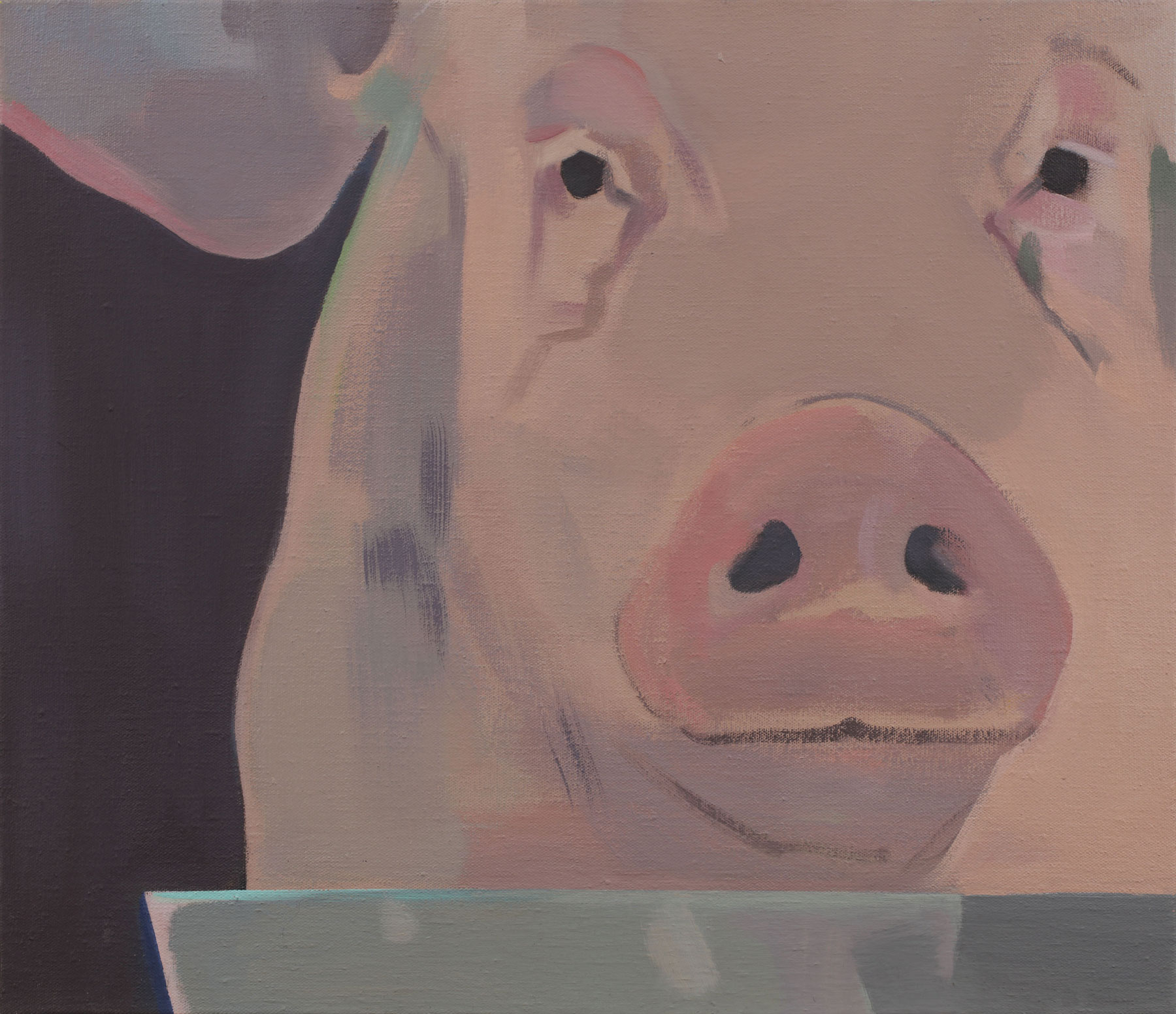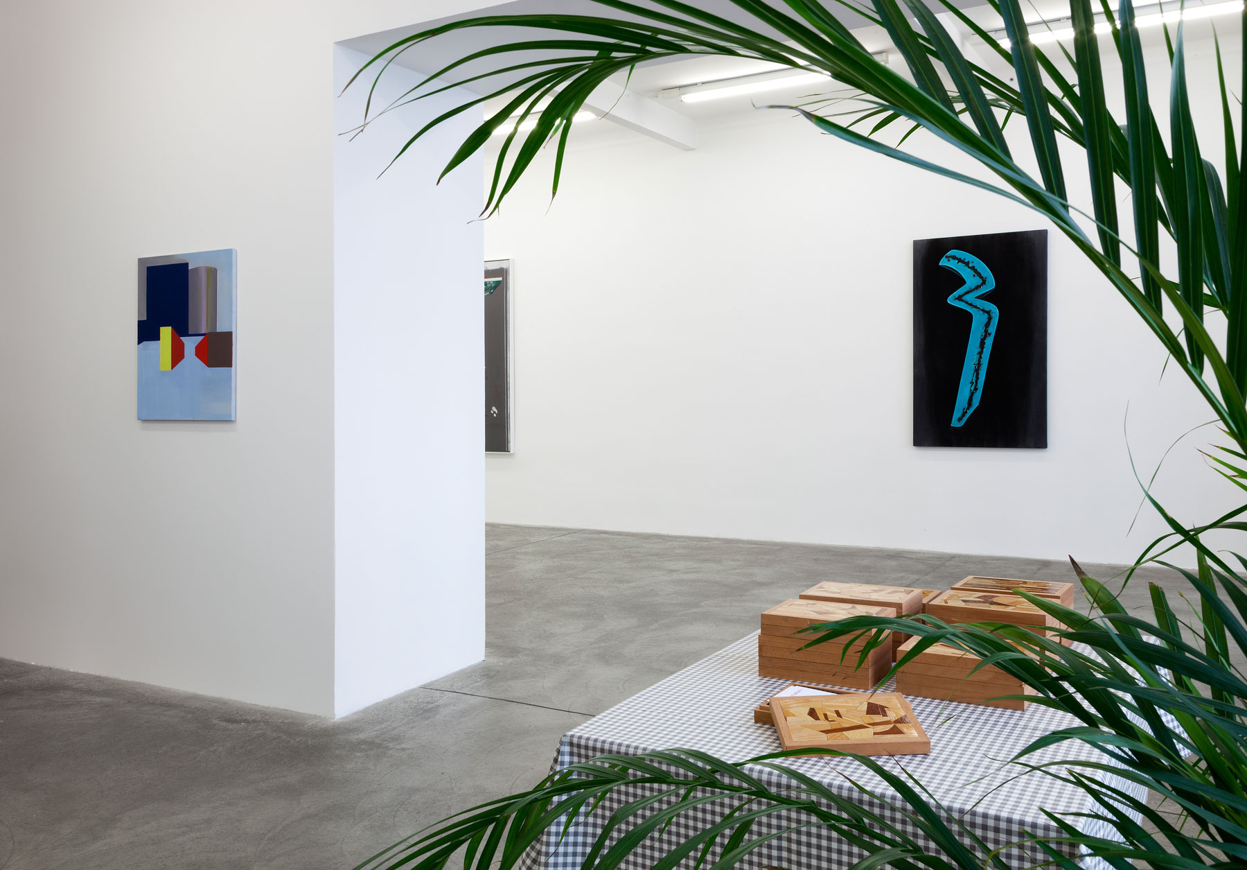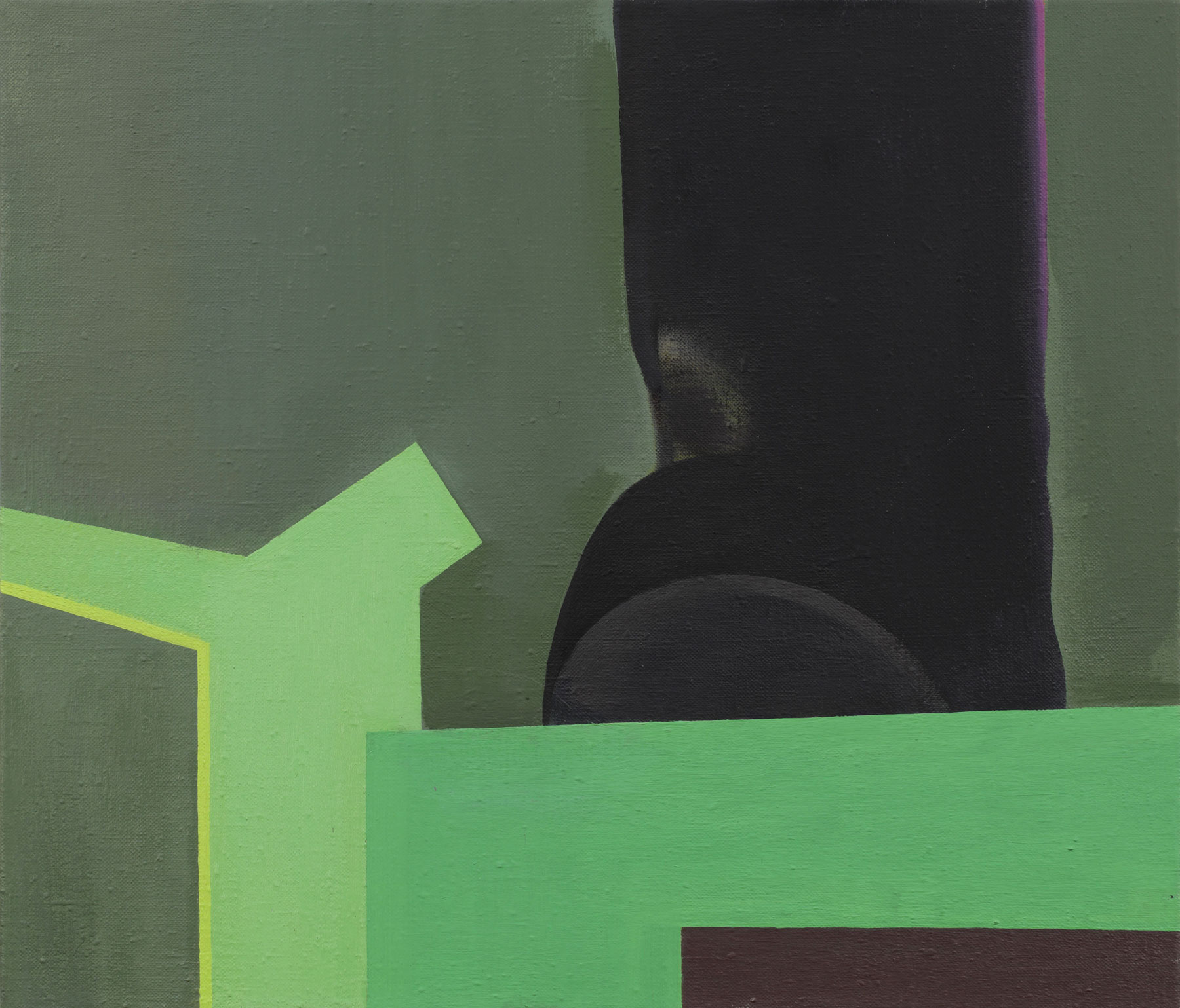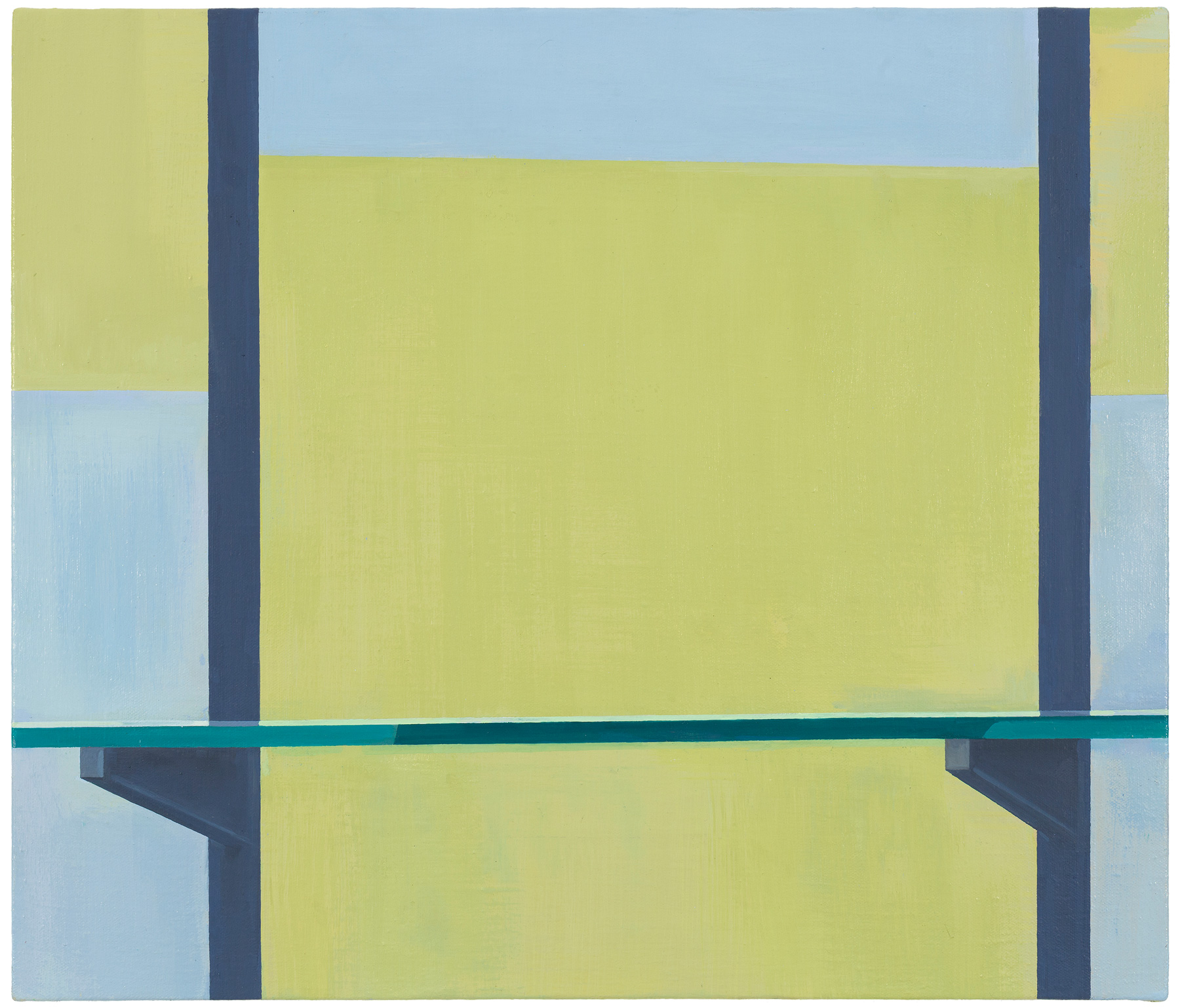 In Jan Merta’s works the technique of painting comes to the fore. He places transparent everyday objects — which seem to dissolve in his brushstrokes — or architectonic fragments in front of monochrome backgrounds that are divided into individual colour fields. He dismisses the clear separation of a central object against a background in favour of a multi-layered permeation of both levels. The objects in the images become visible only by taking a good look.
