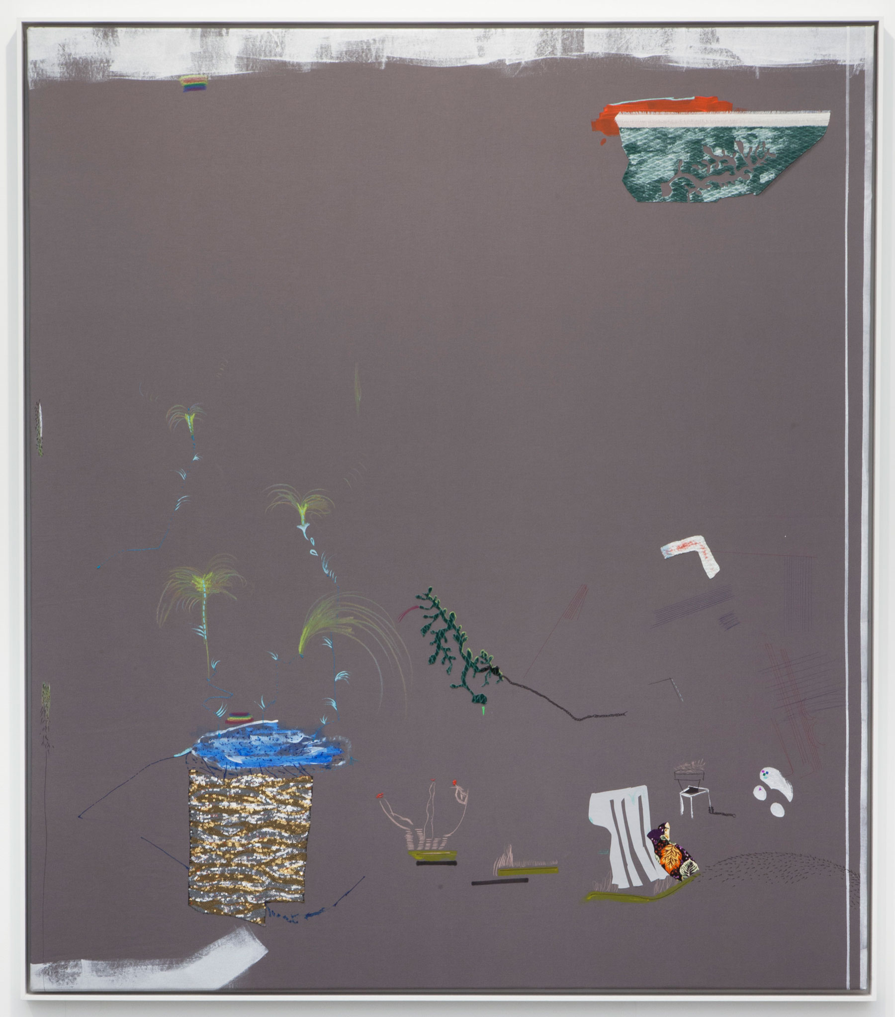 For Milena Dragicevic painting is a medium that is permeated by all other media. “My paintings are a bricologe of form trying to capture the passage of possible objects within a single image. The form my work takes uses a code of abstraction whilst keeping one foot in reality.” The artist amalgamates her own drawings, photographs and interventions with other external sources she incorporates in her compositions. Similar to the work of Benjamin Butler, the process of abstraction allows for a shift in terms of origin and legibility of the initial motifs.