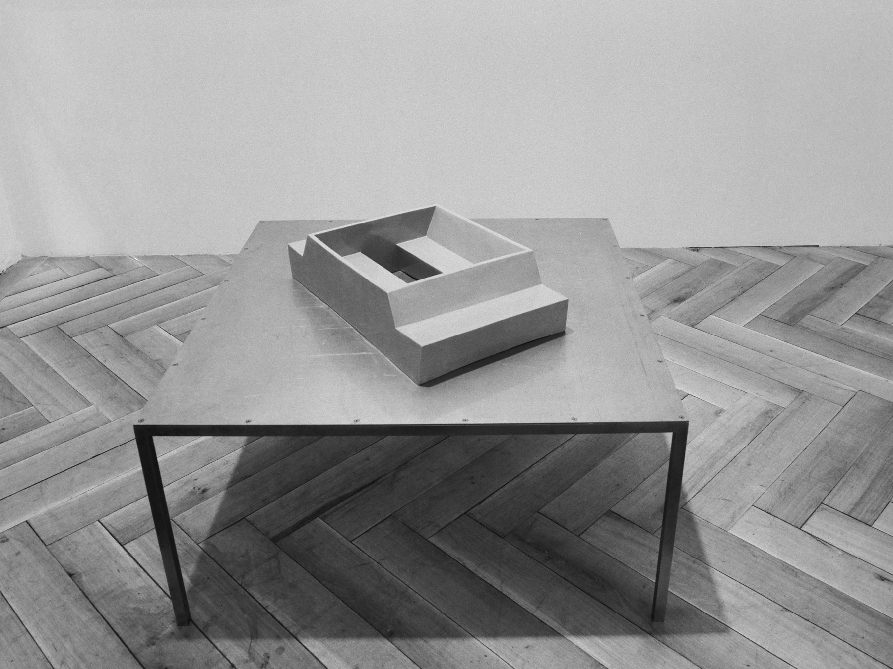 Der psychologische Moment extremer Standpositionen wird in dem Objekt o. T. (unsocial bank) auf zwei Wahlmöglichkeiten reduziert: gegenüber und gefangen, oder frei beweglich aber abgekehrt. Dieses Objekt ist der Größe nach als „Skulpturmodell“ zu werten, wird aber auf einem Edelstahltisch präsentiert, der die Proportion und Größe eines typischen Wohnzimmertisches (Couchtisch) wiederholt. Der Tisch erzeugt den Raum der Skulptur, die vertauschten Größenproportionen chiffrieren die Bedeutungsebenen. Die Skulpturen sind als Form, nicht als definierbare Größe zu erfahren.