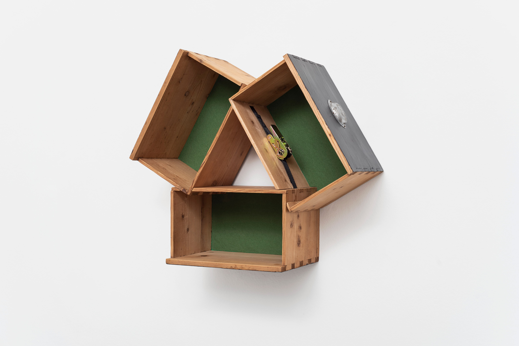 Three modified drawers, ratchet strap, 62.7 × 70.9 × 27.6 cm